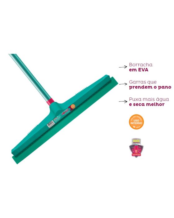 CaracteristicasBorracha em EVA que permite aderir melhor na superfície, puxando mais água e secando melhor.Prende o pano em suas garras para facilitar a limpeza. - Dimensões (médio): 8cm x 39,5cm x 3,5cm - Perfil de borracha com acabamento chanfrado - Ideal para pisos em geral - Marca Bettanin - Referência do Fabricante: BT 1232 - Acompanha Cabo de 112cm - Peso Aprox: 200gr + cabo * As especificações podem ser alteradas sem aviso prévio ** Imagem meramente ilustrativa