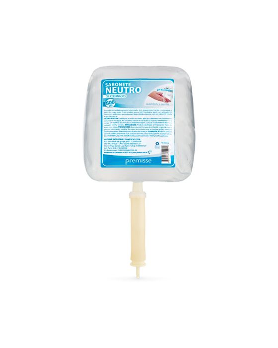 Caracteristicas:O Sabonete apresenta uma formulação cuidadosamente balanceada que proporciona maciez e sedosidade a pele do corpo todo.Modo de usarUmedecer as mãos e o rosto. Aplicar o sabonete com movimentos circulares e enxaguar. Instruções de uso:Umedecer as mãos e o rosto. Aplicar o sabonete fazendo movimentos circulares e enxaguar. - Sabonete de alta eficiência limpadora. - Não agride a pele, pois possui pH fisiológico. - À base de glicerina que amacia e suaviza a pele. - Marca: Premisse - Embalagem: 800ml - Fragrância: Neutro - Acompanha Mangueirinha / Válvula - Referência: C10124 - Peso: 815 gramas aproximadamente - Compatível com Saboneteiras JSN, Goedert(marca Própria Contabilista) e Premisse Sku's: 65385, 47307, 1797 - Acompanha Mangueirinha/Válvula dosadora Conheça outras fragrâncias Disponíveis de Refis Bag In Box Premisse Skus: 6137-Algas Marinhas, 48328-Eco Blue, 44793-Erva Doce, 46631-Neutro Característicvas técnicas: - pH 100% : 5,5 – 6,5 - Aparência e Odor: Líquido sem fragrância e sem corantes. - Densidade: 0,90- 1,10 g/cm³Viscosidade: 1500 – 2500 cP (Viscosímetro FUNGILAB VISCO BASIC SPINDLE 3/20 RPM.) à temperatura de 25°C - Solubilidade na água: 100% - Diluição: Pronto para usar. Sem diluir.Para consultar a FDS (Ficha com Dados de Segurança), acesse (copiar e colar no navegador):https://preview--consultafdscontabilista.base44.app/share?product_id=46631* Imagem meramente ilustrativa