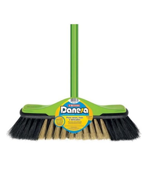 A vassoura Danessa da Bettanin possui cerdas naturais e macias que evitam arranhões no piso. Ela é indicada para pisos secos, lisos e delicados e possui cabo inclinado para facilitar a limpeza sob os móveis. A Bettanin é empresa líder no mercado de produtos de limpeza doméstica. Características- Cerdas com pêlo natural e sintético - Fios longos e macios - Dimensões aproximadas do produto: Altura: 7cm | Largura: 11cm | Comprimento: 31cmPor ser um produto produzido em madeira maciça, o mesmo pode apresentar caracteristicas naturais da espécie da qual foi utilizada em seu processo de fabricação, tais como: desenhos dos veios, o sentido das fibras e manchas naturais da propria madeira. Trata-se de um produto para uso residencial em ambientes internos, sendo sensível a luz solar e umidade. Para limpeza e conservação utilizar pano seco e macio. * As especificações podem ser alteradas sem aviso prévio ** Imagem meramente ilustrativa