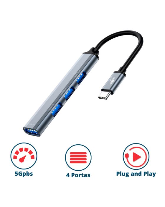 Hub Usb-c 4 Portas C/ Conversor Usb-a Hub41a-v2 Elg