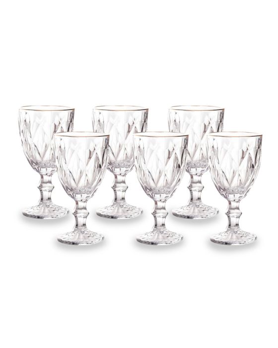Jogo De Taca P/ Agua Com Fio De Ouro Diamond Vidro Cristal 325ml C/6 Lyor Www