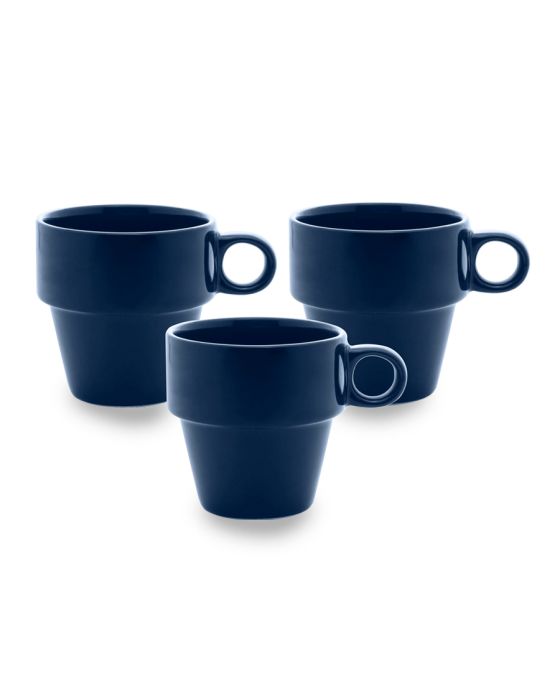 Jogo De Xicara De Cafe Ceramica Empilhavel Marinho 210ml C/3 Lyor