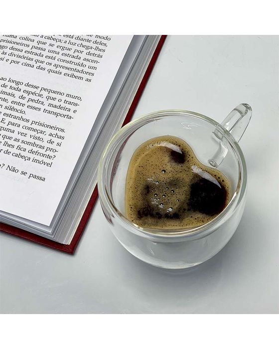 Características:O Conjunto 2 Xícaras de Café Heart da Lyor é a escolha perfeita para apreciadores de café que buscam uma experiência visual única. Com um design encantador em formato de coração e construção em vidro borossilicato de parede dupla, estas xícaras são ideais para manter a temperatura da bebida por mais tempo e proporcionar um toque especial aos momentos de degustação.Material PremiumFabricadas em vidro borossilicato, as xícaras oferecem resistência térmica, mantendo o café quente por mais tempo, além de serem leves e duráveis.Design HeartCom uma capacidade de 80ml, cada xícara apresenta um design em formato de coração, adicionando um toque romântico e encantador à sua experiência de café.Parede DuplaA parede dupla do vidro borossilicato não apenas mantém a temperatura da bebida, mas também evita que suas mãos se queimem ao segurar a xícara.Versatilidade e EstiloAlém de serem funcionais, as Xícaras de Café Heart da Lyor são também um elemento decorativo charmoso para sua mesa, tornando os momentos de café ainda mais especiais.Detalhes:- Marca: Lyor;- Modelo: Heart;- Referência: 1374;- Linha: Xícaras;- Tipo: Conjunto;- Cor: Cristal;- Capacidade: 80ml cada;- Contém: 1 embalagem com 2 unidades do produto;- Interior com formato de coração;- Design moderno, garantindo versatilidade e estilo;- Possui parede dupla;- Material premium.Ideal para:- Ideal para salas de reunião, espaço para café, lanchonetes, restaurantes, panificadora e confeitaria, hotéis e demais estabelecimentos.Limpeza e cuidados:- Lavar com detergente neutro, esponja macia e secar imediatamente; - Não lavar em máquinas e não utilizar produtos químico.Recomendações:- Este produto pode ir ao Micro-Ondas e Lava Louças, exceto: fornos, freezer e fogões.Composição: - Fabricado em Vidro Borossilicato.Medidas:- Dimensões do produto: 9,6 x 6,7 x 6,9cm (CxLxA);- Dimensões da embalagem: 14,8 x 7,8 x 7,8cm (CxLxA);- Peso: 0,17kg.Conteúdo da embalagem: 2 Xícaras de Café Parede Dupla de Vidro Borossilicato Heart 80ml Lyor.As especificações podem ser alteradas sem aviso prévio ** Imagem meramente ilustrativa.