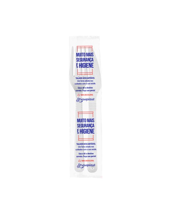 Kit Sache Garfo E Faca Plastico Branco Ps C/50 Strawplast