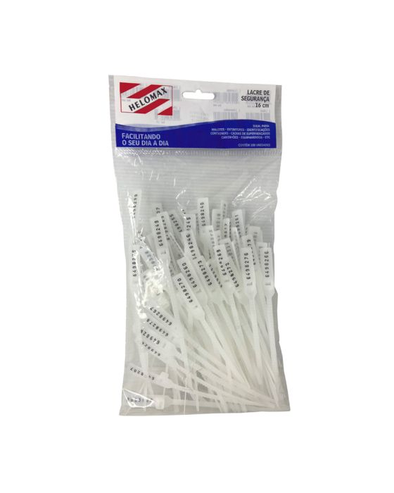 Características:- Lacre de segurança em polipropileno 16cm branco com numeração sequencial pacote com 100 unidades: O Lacre para Malote 16cm da Helomax é ideal para garantir segurança e inviolabilidade no transporte e armazenamento de produtos e documentos. Produzido em polipropileno de alta resistência, conta com sistema de travamento único tipo “escadinha”, que impede reutilização e assegura fechamento eficiente.- Controle e rastreabilidade com numeração sequencial: Possui numeração sequencial de 7 dígitos, permitindo identificação rápida e controle preciso dos volumes, sendo essencial para processos logísticos, conferência e segurança patrimonial.- Praticidade e resistência operacional: Com 16cm de comprimento, é indicado para lacração de volumes menores, oferecendo excelente resistência e facilidade de aplicação manual, otimizando as rotinas de uso.- Versatilidade de aplicações: Indicado para malotes, malas de viagem, caixas, containers, caminhões, equipamentos, extintores, produtos alimentícios e diversas outras aplicações que exigem segurança e identificação.- Indicação de uso profissional: Ideal para empresas que necessitam de controle, organização e proteção de mercadorias e documentos, garantindo integridade durante o transporte e armazenamento.- Sobre a marca Helomax: A Helomax é reconhecida pela fabricação de soluções em lacres de segurança, oferecendo produtos com tecnologia, resistência e confiabilidade para atender às demandas de controle e proteção em diversos segmentos.- Dimensões da embalagem:Comprimento: 25cm;Largura: 14cm;Altura: 1cm;Peso: 100g.* As especificações podem ser alteradas sem aviso prévio ** Imagem meramente ilustrativa.