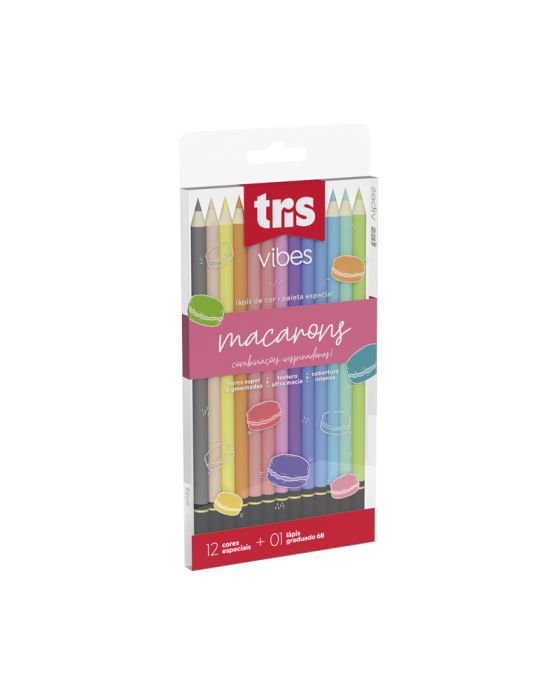 Lapis De Cor 12 Cores Macarons Vibes + 1 Lapis 6b Tris