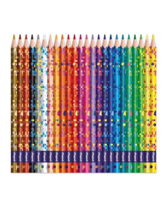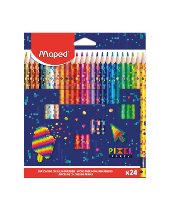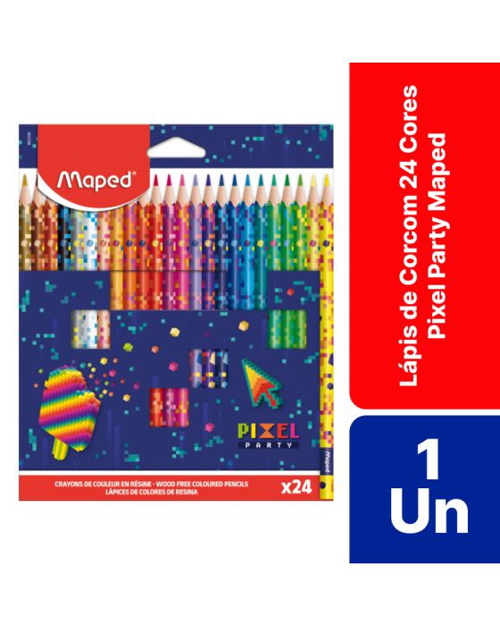 Características:A coleção Pixel Party Maped faz você mergulhar em um cenário retro-futurista, inspirado em códigos de jogos!Ideal para meninos e meninas que gostam de futurismo, o Lápis 24 cores Pixel Party Maped possui cores vibrantes, aderência fácil e confortável devido ao seu formato triangular, além de ser feito sem madeira, apenas em resina, tornando um material durável e suistentável.Detalhes:- Marca: Maped;- Modelo: Pixel Party;- Referência: 86220600;- Linha: Lápis de cor;- Cores: 24 cores;- Contém: 1 embalagem com 24 cores;- Formato: Triangular;- Corpo estampado com detalhes em pixel ideal para meninos ou meninas;- Cores vibrantes;- Ultra-resistente;- À prova de lascas;- 0% Madeira.Fabricado na China | Validade: Indeterminada.Composição:- Fabricado em resina.Medidas:- Dimensões da embalagem: 20,5 x 17,2 x 1cm (CxLxA);- Peso: 233g.ATENÇÃO! NÃO RECOMENDÁVEL PARA CRIANÇAS DE ATÉ 3 (TRÊS) ANOS POR CONTER PARTE(S) PEQUENA(S) QUE PODEM SER ENGOLIDA(S) OU ASPIRADA(S). CRIANÇAS DE ATÉ 8 ANOS DEVEM UTILIZAR SOB SUPERVISÃO DE UM ADULTO POR CONTER PONTA(S) AGUDA(S) FUNCIONAL(IS).* As especificações podem ser alteradas sem aviso prévio ** Imagem meramente ilustrativa.