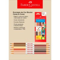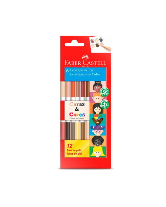 Características: Os EcoLápis caras & cores Faber-castell foram desenvolvidos para celebrar a diversidade e estimular a criatividade das crianças.Detalhes: - Marca: Faber-Castell.- Modelo: 120606CC.- Linha: EcoLápis Caras e Cores.- Formato: Redondo.- Cores: 12 tons de pele.- Contém: 1 estojo com 6 lápis / 12 cores.- Lápis bicolor 2 em 1.- Cores mais vivas e ótima cobertura.- Tons de pele misturáveis- Produto certificado: FSC.* As especificações podem ser alteradas sem aviso prévio ** Imagem meramente ilustrativa