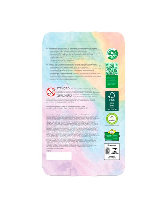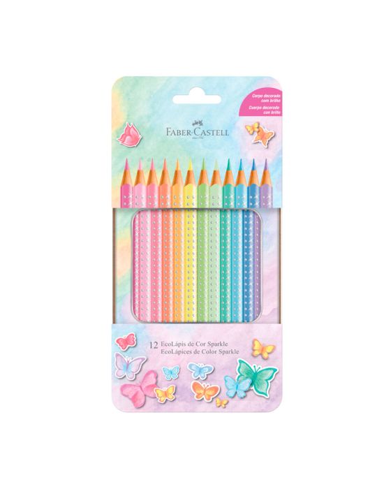 Características:- Beleza e delicadeza em cada traço: O Ecolápis de Cor Sparkle 12 Cores Faber-Castell combina estética sofisticada com desempenho excepcional, trazendo tons pastel suaves e acabamento brilhante que elevam a experiência artística. Acompanha uma lata exclusiva que protege os lápis e facilita o transporte, ideal para quem busca praticidade e estilo em um único conjunto.- Ergonomia e conforto ao desenhar: Seu formato triangular ergonômico garante uma pegada firme e confortável, proporcionando controle e precisão durante o uso. A ponta resistente evita quebras, assegurando maior durabilidade e eficiência no traço, seja para colorir grandes áreas ou realizar detalhes finos com suavidade e uniformidade.- Cores suaves e acabamento brilhante: Com 12 cores em tons pastel, o Ecolápis Sparkle oferece uma paleta delicada e harmoniosa que realça desenhos, ilustrações e letterings. O corpo com acabamento cintilante reflete o design exclusivo da linha, que une elegância e funcionalidade, tornando o ato de desenhar ainda mais inspirador.- Sustentabilidade e qualidade certificada: Produzido com madeira 100% reflorestada e certificada FSC®, o lápis reafirma o compromisso da Faber-Castell com o meio ambiente e o uso responsável de recursos naturais. Sua composição à base de pigmentos, ceras e aglutinantes garante cores vibrantes, aplicação uniforme e total segurança por ser um produto atóxico.- Aplicações e versatilidade: Ideal para estudantes, artistas e entusiastas da arte, o kit é perfeito para colorir, desenhar, criar sombreamentos e realces sutis. Seu estojo metálico compacto é ideal para levar em viagens, aulas ou estúdios, mantendo os lápis sempre protegidos e organizados.- Tradição e excelência Faber-Castell: Reconhecida mundialmente por sua inovação e qualidade em materiais de escrita e arte, a Faber-Castell é referência há mais de dois séculos na produção de lápis e instrumentos criativos. Seus produtos combinam desempenho, durabilidade e design sustentável, inspirando gerações de artistas e profissionais em todo o mundo.- Dimensões da embalagem: Comprimento: 18,3cm; Largura: 10,5cm; Altura: 1,5cm; Peso: 222g.ATENÇÃO! NÃO RECOMENDÁVEL PARA CRIANÇAS MENORES DE 3 (TRÊS) ANOS POR CONTER PARTE(S) PEQUENA(S) QUE PODE(M) SER ENGOLIDA(S) OU ASPIRADA(S) E PONTA(S) AGUDA(S) FUNCIONAL(IS). CRIANÇAS ENTRE 5 (CINCO) E 8 (OITO) ANOS SOMENTE DEVEM UTILIZAR SOBR SUPERVISÃO DE UM ADULTO.* As especificações podem ser alteradas sem aviso prévio ** Imagem meramente ilustrativa.