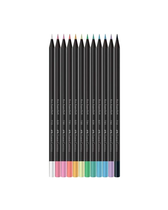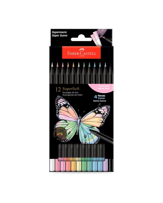 Características:- Criatividade e suavidade em cores pastéis: O Ecolápis de Cor SuperSoft Pastel Faber-Castell foi desenvolvido para proporcionar uma experiência artística única, combinando textura macia, excelente cobertura e uma paleta moderna em tons delicados. O novo sortimento pastel amplia as possibilidades criativas com 4 novas cores suaves, além dos lápis preto e branco que completam o conjunto, garantindo versatilidade em traços, contrastes e sombreamentos.- Desempenho superior e cobertura uniforme: Com mina super macia e alta concentração de pigmentos, o Ecolápis SuperSoft entrega cores vivas e intensas em qualquer tipo de papel, inclusive os mais escuros. Sua formulação especial assegura aplicação suave e traços consistentes, ideais para desenhos artísticos, coloração detalhada e técnicas de sobreposição de tons.- Sustentabilidade e design diferenciado: Produzidos com madeira 100% reflorestada e certificada pelo FSC®, os lápis reforçam o compromisso da Faber-Castell com o meio ambiente. O design exclusivo da linha traz ilustrações inspiradas na fauna latino-americana, unindo estética, ergonomia e identidade visual marcante, além do selo de originalidade que destaca o pioneirismo da marca.- Aplicações e versatilidade: Perfeito para artistas, estudantes e amantes do desenho, o conjunto SuperSoft Pastel é indicado para ilustrações, trabalhos escolares e criações decorativas. Sua ampla gama de cores permite explorar diferentes estilos e efeitos, promovendo liberdade criativa e resultados de alta qualidade.- Tradição e excelência Faber-Castell: Reconhecida mundialmente por sua inovação e qualidade em materiais de escrita e arte, a Faber-Castell é referência há mais de dois séculos na produção de lápis e instrumentos criativos. Seus produtos combinam desempenho, durabilidade e design sustentável, inspirando gerações de artistas e profissionais em todo o mundo.- Dimensões da embalagem: Comprimento: 20,5cm; Largura: 9cm; Altura: 1,7cm; Peso: 75g.ATENÇÃO! NÃO RECOMENDÁVEL PARA CRIANÇAS MENORES DE 3 (TRÊS) ANOS POR CONTER PARTE(S) PEQUENA(S) QUE PODE(M) SER ENGOLIDA(S) OU ASPIRADA(S) E PONTA(S) AGUDA(S) FUNCIONAL(IS). CRIANÇAS ENTRE 5 (CINCO) E 8 (OITO) ANOS SOMENTE DEVEM UTILIZAR SOBR SUPERVISÃO DE UM ADULTO.* As especificações podem ser alteradas sem aviso prévio ** Imagem meramente ilustrativa.