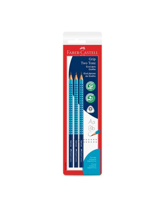 Características:Grip Two Tone em uma cartela exclusiva que chegou para completar seu estojo. São 3 lápis com uma combinação exclusiva na cor azul, para quem valoriza a praticidade e o conforto na escrita mas também não abre mão de um visual moderno. Exclusivas esferas antideslizantes: maior firmeza na escrita Visual moderno: combinação exclusiva de tons de rosa Formato triangular e ergonômico para maior conforto. Detalhes:- Marca: Faber-Castell;- Modelo: Ecolápis Grip 2001 Two Tone;- Referência: SM/2001BTTAZ;- Linha: Lápis Grafite;- Cores: Azul;- Formato: Triangular ergonômico;- Contém: 1 Blister com 3 unidades do produto;- Esferas antideslizantes que garantem maior firmeza na escrita;- Design exclusivo Faber-Castell;- Ponta resistente e escrita macia;- Madeira certificada e sustentável - FSC.ATENÇÃO! NÃO RECOMENDÁVEL PARA CRIANÇAS MENORES DE 3 (TRÊS) ANOS POR CONTER PARTE(S) PEQUENA(S) QUE PODE(M) SER ENGOLIDA(S) OU ASPIRADA(S) E PONTA(S) AGUDA(S) FUNCIONAL(IS). CRIANÇAS ENTRE 5 (CINCO) E 8 (OITO) ANOS SOMENTE DEVEM UTILIZAR SOBR SUPERVISÃO DE UM ADULTO.* As especificações podem ser alteradas sem aviso prévio ** Imagem meramente ilustrativa