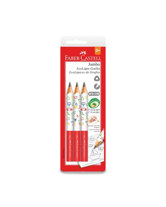 Caracteristicas:Com os produtos da Faber Castell você da mais cor aos seus trabalhos e volta para a escola equipado com materiais de qualidade. Eles são resistentes, feitos com materiais ecológicos e ainda tem vários modelos de acordo com o seu estilo ou trabalho.Detalhes:- Marca: Faber-Castell.- Modelo: Ecolápis Jumbo.- Formato: Triangular.- Graduação: N.2 HB.- Cor: Preto.- Cor do corpo: Branco/Vermelho- Contém: 1 blister com 3 Unidades.- Formato triangular ergonômico: garantia de conforto e melhor escrita- Diâmetro Jumbo: ideal para mãos pequenas.- Ponta Max Resistente.- Produto certificado FSC.* As especificações podem ser alteradas sem aviso prévio ** Imagem meramente ilustrativa.