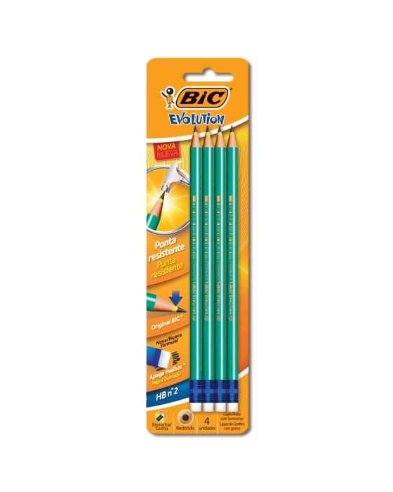 Lapis Grafite Redondo C/ Borracha Evolution Bls C/4 Bic