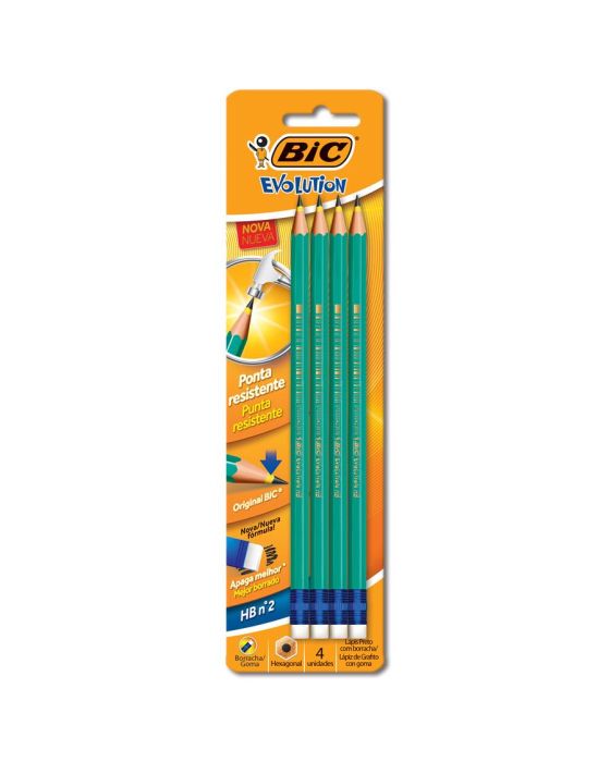 Lapis Grafite Sextavado C/ Borracha Evolution Bls C/4 Bic