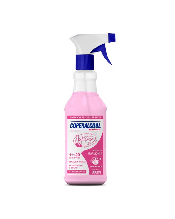 Características:O equilíbrio perfeito entre limpeza e bem-estar. O Limpador Multissuperfície Segredos da Natureza é o primeiro produto à base de álcool no mercado que foi desenvolvido para ser aplicado em + de 20 superfícies.A fragrância de Flores Brancas, após a limpeza, traz para o ambiente um clima romântico, além de inspirar o amor.Detalhes:- Marca: Coperalcool;- Modelo: Backfree Segredos da Natureza Jardim da Harmonia;- Linha: Limpadores;- Tipo: Spray;- Fragrância: Flores Brancas;- Volume: 500ml;- Cor: Rosa;- Contém: 1 unidade do produto;- 5 em 1: Limpa, Perfuma, Dá Brilho, Desengordura e Tira Limo;- Mais de 20 superfícies podem ser limpas;- Até 30 horas de perfumação;- Com álcool;- Com óleos essenciais;- Secagem rápida;- Acabamento e brilho.Indústria Brasileira. | Validade: 24 meses após a data de fabricação impressa na embalagem.Ideal para:- Ideal para usar em Azulejo, Alumínio, Cerâmica, Porcelanato, Vidro, Laminado Vinílico, Madeira, Mármore, Fórmica, Tecido, Metal, Plástico, Fogão, Geladeira, Micro-ondas, Forno Elétrico, Eletrodomésticos, Superfícies enceradas e laqueadas e espelhos.Modo de usar:- Para limpeza mais profunda: Aplique o produto puro na superfície a ser limpa e esfregue com um pano ou esponja, deixe agir por cerca de um minuto e remova a sujeira com um pano úmido ou enxágue, se necessário.- Para limpeza mais superficial ou de pisos e azulejos: Aplique o produto sobre a superfície a ser limpa e espalhe com um pano ou flanela, removendo a sujeira, em seguida para finalização e brilho, passe um pano seco , aplique novamente o produto e espalhe com um pano ou flanela.Recomendações:- Teste em uma pequena área não visível antes de usa-lo pela primeira vez;- Para limpeza de superfícies grandes, aplique por partes e realize o enxágue sempre que necessário.Conservação:- Conservar em local em local seguro, coberto, ventilado e ao abrigo do sol e do calor;- Não derramar sobre o fogo, manter afastado do fogo.Composição:- Água, Álcool Etílico, Tensoativo Aniônico, Tensoativo Catiônico, Emulsificante, Sequestrante, Conservante e Fragrância.Medidas:- Dimensões do produto: 7 x 9,5 x 24cm (CxLxA);- Peso: 500g.ATENÇÃO! MANTENHA FORA DO ALCANCE DAS CRIANÇAS E DOS ANIMAIS DOMÉSTICOS.* As especificações podem ser alteradas sem aviso prévio ** Imagem meramente ilustrativa.