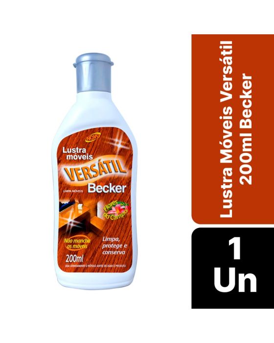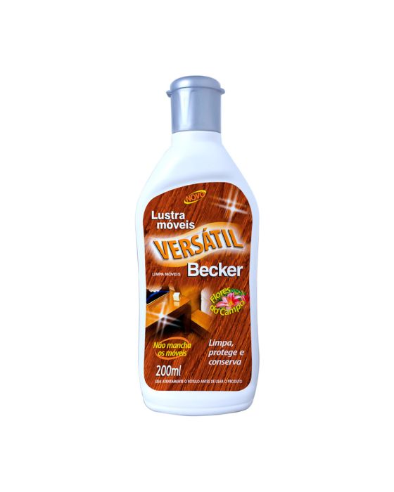 Características:- Brilho e proteção duradoura para superfícies de madeira: O Lustra Móveis Versátil Flores do Campo 200ml Becker foi desenvolvido para restaurar e conservar o aspecto natural dos móveis, oferecendo brilho intenso e cuidado profissional. Sua fórmula de alta tecnologia forma uma película protetora sobre a superfície, que reduz a aderência de poeira e preserva o acabamento por mais tempo. É ideal para empresas de limpeza, escritórios, hotéis, escolas, condomínios e demais ambientes corporativos que buscam manter móveis com aparência limpa e bem cuidada.- Fórmula cremosa e de fácil aplicação: Com textura cremosa e espalhamento uniforme, o Lustra Móveis Becker promove brilho seco e sem oleosidade, evitando manchas e resíduos. Sua ação eficiente remove pequenas impurezas, realça o brilho da madeira e forma uma barreira protetora que prolonga a durabilidade dos móveis. O produto limpa, protege e conserva, mantendo o aspecto de novo mesmo com o uso frequente em ambientes corporativos de alta rotatividade.- Composição técnica de alto desempenho: Sua fórmula contém álcool ceto estearílico, espessante, coadjuvantes, opacificante, emoliente, neutralizante, conservante, fragrância e veículo, proporcionando equilíbrio entre limpeza, brilho e proteção. Essa combinação garante um acabamento uniforme e seguro para diferentes tipos de madeira tratada, sem engordurar nem danificar as superfícies.- Perfume suave e sensação de cuidado: A fragrância Flores do Campo confere um aroma leve e agradável aos ambientes, contribuindo para a sensação de limpeza e conforto. O produto não deve ser utilizado em pisos, escadas ou madeiras não tratadas, garantindo segurança e resultado profissional quando aplicado corretamente com flanela seca e limpa.- Marca de tradição e confiança: A Becker é reconhecida no mercado de limpeza e cuidados têxteis pela qualidade e eficiência de seus produtos.- Dimensões da embalagem:Comprimento: 6,2cm; Largura: 3,3cm; Altura: 18cm; Peso: 224g.IMPORTANTE! CONSERVAR FORA DO ALCANCE DAS CRIANÇAS E DOS ANIMAIS DOMÉSTICOS.* As especificações podem ser alteradas sem aviso prévio ** Imagem meramente ilustrativa.