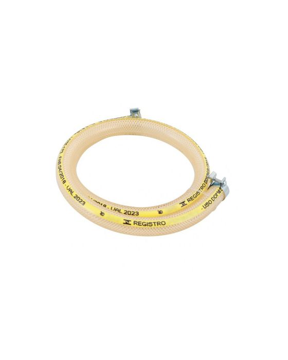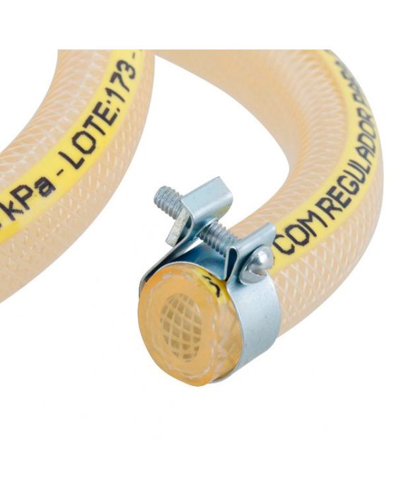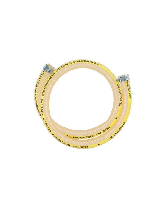 Caracteristicas:A mangueira de gás foi desenvolvida para uso de instalações domésticas de GLP.Detalhes:- Marca: Pado.- Linha: Mangueira para gás.- Cor: Amarela / Transparente.- Validade/Garantia: 5 anos.- Comprimento: 0,80m.- Desenvolvida conforme a norma NBR 8613.- Utilizado em conjunto com reguladores de gás com pressão nominal de 23,8 kPa.USO DOMÉSTICOConexões:- Bitola: 10mm x 3,9mm.Composição:- Mangueira de PVC flexível e fio de poliéster.Recomendações:- A mangueira deve ser armazenada protegida da ação direta da luz solar e umidade, em ambiente com temperatura moderada entre 5°C e 35ºC.- Utilizar somente com regulador de baixa pressão certificado.- Utilizar somente em instalações domésticas GLP.- A mangueira para GLP não pode atravessar e nem ser embutida em paredes.- Fixar as extremidades somente com braçadeiras apropriadas.- Não se pode efetuar qualquer tipo de emenda (soldagem ou colagem).- Não pode ser utilizada em fogões de embutir.- Não pode passar atrás do fogão. - Observar o prazo de validade.- Não aplicar qualquer revestimento sobre o produto.Contém:- 1 mangueira para regulador de gás 80mm- 2 abraçadeiras.Registro Segurança INMETRO 003571/2018* As especificações podem ser alteradas sem aviso prévio ** Imagem meramente ilustrativa.