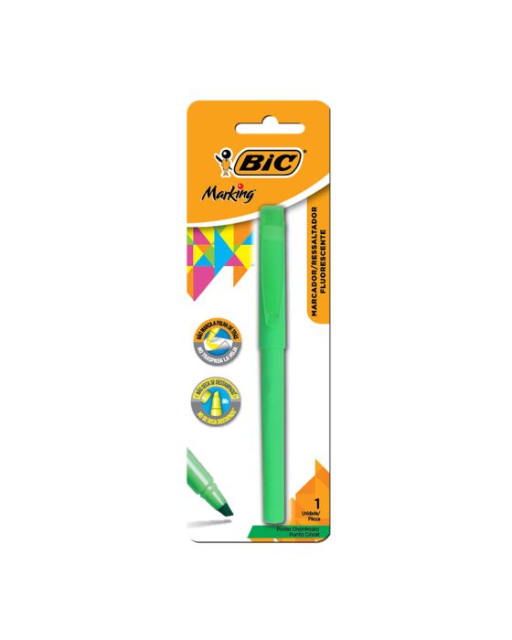 Características:Com o Marca Texto Brite Liner Verde Bic, você poderá destacar de forma prática as suas anotações, com a ponta chanfrada permite que você faça traços duplos: Fino para sublinhar e grosso para destacar. Além da cor da tinta não perde intensidade com o tempo.Detalhes:- Marca: Bic;- Modelo: Marking Brite Liner;- Referência: 522219;- Linha: Marca Texto;- Tipo: Fluorescente;- Cor: Verde;- Ponta: Chanfrada;- Contém: 1 blister com uma unidade do produto;- Não marca a folha de trás;- Traços finos ou grossos;- Para todos os tipos de papeis;- Não perde a intensidade da tinta com o tempo.Fabricado no México. | Validade: Indeterminada.Ideal para:- Ideal para escritórios, universidades, escolas, lojas, papelarias e livrarias.Composição:- Resinas termoplásticas, ponta de feltro e tinta à base de corantes e água.Medidas:- Dimensões do produto: 13,7 x 1,5 x 1cm (CxLxA);- Dimensões da embalagem: 20,4 x 6,6 x 1,5cm (CxLxA);- Peso: 15g.Produto certificado pelo INMETRO 011822/2024 OCP 0040.ATENÇÃO! NÃO RECOMENDÁVEL PARA CRIANÇAS DE ATÉ 3 (TRÊS) ANOS, POR CONTER PARTE(S) PEQUENA(S) QUE PODE(M) SER ENGOLIDA(S) OU ASPIRADA(S).* As especificações podem ser alteradas sem aviso prévio ** Imagem meramente ilustrativa.