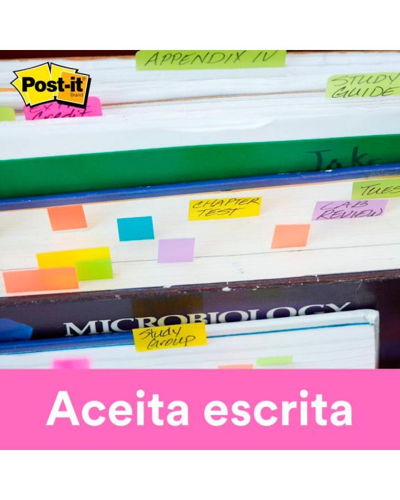 Características:Em um formato menor e diferenciado, os Marcadores Adesivos de Páginas Post-it® chamam a sua atenção para não se esquecer de compromissos e assuntos importantes. Possuem suporte com sistema puxa fácil, o que facilita o uso.Detalhes:- Marca: Post-it®;- Fabricante: 3M;- Modelo: Adesivo Post-it® Flags;- Referência: HB004352223;- Linha: Marcadores de página;- Cor: Azul, Verde, Amarelo, Laranja e Pink;- Quantidade de folhas: 100 folhas (20 em cada bloco);- Quantidade de blocos: 5 blocos;- Contém: 1 embalagem com 100 folhas;- Medidas: 11,9 x 43,2mm (1,19 x 4,32cm);- Facilitam a busca por informações, otimizando o seu tempo através da organização;- Reposicionáveis, podendo ser retirado sem danificar a página;- Fácil para marcar os pontos mais importantes da sua agenda, podendo dividir cadernos e fichários, pois aceita escrita;- Descubra rapidamente o que é importante;- Aceita Escrita.Aplicações sugeridas:- Ideais para destacar compromissos importantes, demarcar livros, encontrar artigos em revistas e organizar documentos e projetos, sem a necessidade de riscar ou marcar o papel.Composição:- Fabricado em papel com adesivo com base vegetal reposicionável.Conteúdo da embalagem: 1 Marcador De Pagina Adesivo Post-it Flags Colorido 11,9 X 43,2 Mm 100 Folhas 3m.* As especificações podem ser alteradas sem aviso prévio ** Imagem meramente ilustrativa.