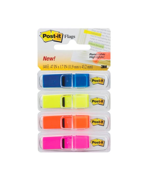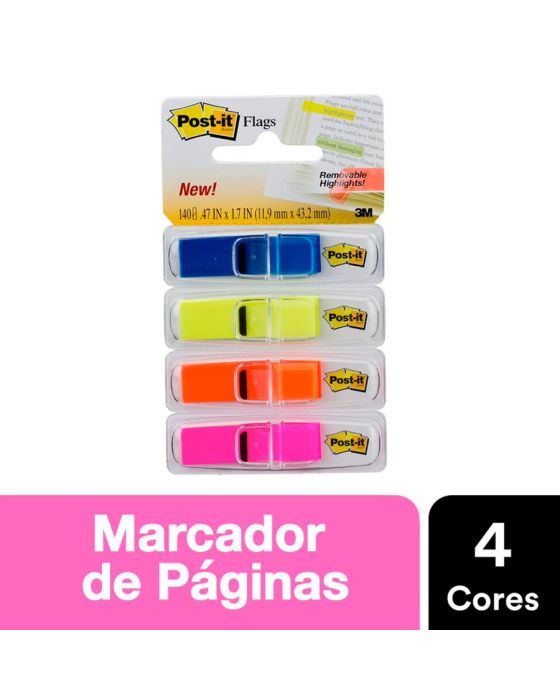 Características:O Marcador de Página Adesivo Post-it® Flags Transparentes possuem cores neon que são ideais para identificar partes em um texto ou livro, além de marcar as páginas do seu livro.Detalhes:- Marca: Post-it®;- Fabricante: 3M;- Modelo: Adesivo Post-it® Flags;- Referência: HB004193486;- Linha: Marcadores de página;- Cor: Azul, Amarelo, Laranja e Rosa;- Quantidade de folhas: 140 folhas (35 em cada bloco);- Quantidade de blocos: 4 blocos;- Contém: 1 embalagem com 140 folhas;- Medidas: 11 x 43mm (1,1 x 4,3cm);- Cartela com dispensador;- Facilitam a busca por informações, otimizando o seu tempo através da organização;- Reposicionáveis, podendo ser retirado sem danificar a página;- Fácil para marcar os pontos mais importantes da sua agenda, podendo dividir cadernos e fichários, pois aceita escrita;- Descubra rapidamente o que é importante.Aplicações sugeridas:- Ideais para destacar compromissos importantes, demarcar livros, encontrar artigos em revistas e organizar documentos e projetos, sem a necessidade de riscar ou marcar o papel.Conteúdo da embalagem: 1 Marcador De Pagina Adesivo Post-it Flags Colorido 25 X 43 Mm 140 Folhas 3m.* As especificações podem ser alteradas sem aviso prévio ** Imagem meramente ilustrativa.