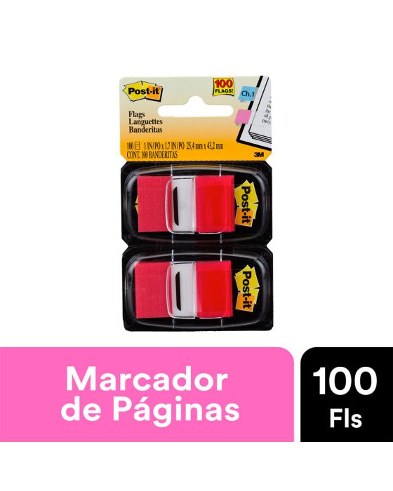 Marcador De Pagina Adesivo Post-it Flags Vermelho 100 Fls 25 X 43mm 3m