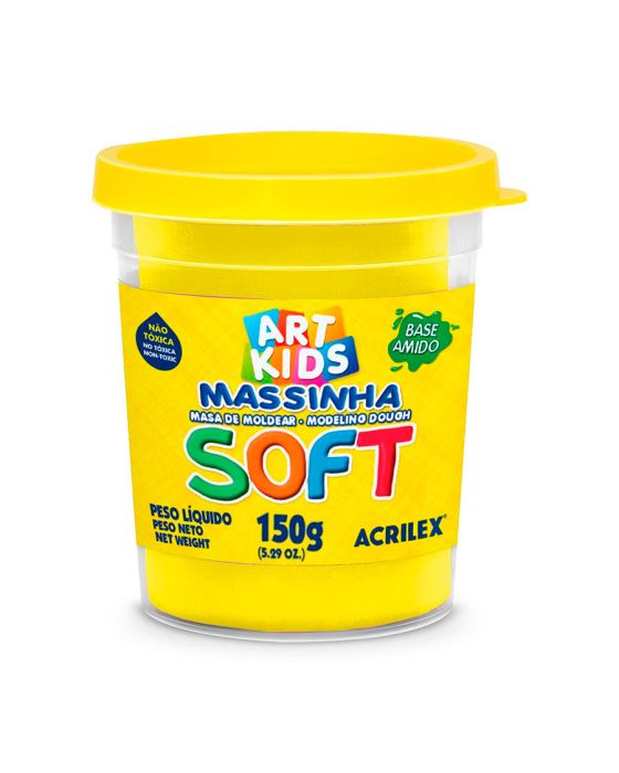 Características:Foi desenvolvida para uso escolar ou entretenimento. Ideal para atividades de desenvolvimento da coordenação motora e percepção de formas. Também é ótima para quem gosta de usar sua criatividade em trabalhos artesanais.Detalhes:- Marca: Acrilex.- Modelo: Massinha Soft.- Referência: 102.- Linha: Massa de modelar.- Cor: Amarelo Limão.- Aroma: Tutti-Frutti.- Contém: 1 unidade do produto.- Peso: 150g.- Não Tóxica.- À base de amido.- Super macia.- Cores vivas e brilhantes.Uso:- Desenvolvida para uso escolar ou entretenimento.Ideal para:- Ideal para atividades de desenvolvimento da coordenação motora e percepção de formas, também é ótima para quem gosta de usar sua criatividade artesanal.Outros:- Você pode guardar as esculturas que você quiser, é só deixar a massa secar durante 5 dias. Após seca, pode ser pintada com Guache Acrilex.Composição:- Água, Carboidratos de Cereais, Glúten, Cloreto de Sódio, Conservante, Aroma, Aditivos e Pigmentos.* As especificações podem ser alteradas sem aviso prévio ** Imagem meramente ilustrativa.
