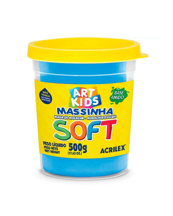 Características:Foi desenvolvida para uso escolar ou entretenimento. Ideal para atividades de desenvolvimento da coordenação motora e percepção de formas. Também é ótima para quem gosta de usar sua criatividade em trabalhos artesanais.Detalhes: - Marca: Acrilex.- Modelo: Massinha Soft.- Referência: 109.- Linha: Massa de modelar.- Cor: Azul.- Aroma: Tutti-Frutti.- Contém: 1 unidade do produto.- Peso: 500g.- Não Tóxica.- À base de amido.- Super macia.- Cores vivas e brilhantes.Uso: - Desenvolvida para uso escolar ou entretenimento.Ideal para: - Ideal para atividades de desenvolvimento da coordenação motora e percepção de formas, também é ótima para quem gosta de usar sua criatividade artesanal.Outros:- Você pode guardar as esculturas que você quiser, é só deixar a massa secar durante 5 dias. Após seca, pode ser pintada com Guache Acrilex.Composição:- Água, Carboidratos de Cereais, Glúten, Cloreto de Sódio, Conservante, Aroma, Aditivos e Pigmentos.* As especificações podem ser alteradas sem aviso prévio ** Imagem meramente ilustrativa.