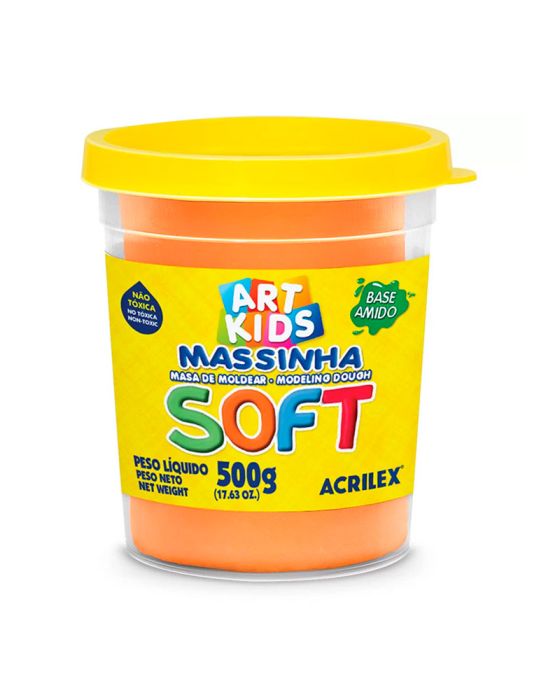 Características:Foi desenvolvida para uso escolar ou entretenimento. Ideal para atividades de desenvolvimento da coordenação motora e percepção de formas. Também é ótima para quem gosta de usar sua criatividade em trabalhos artesanais.Detalhes: - Marca: Acrilex.- Modelo: Massinha Soft.- Referência: 105.- Linha: Massa de modelar.- Cor: Laranja.- Aroma: Tutti-Frutti.- Contém: 1 unidade do produto.- Peso: 500g.- Não Tóxica.- À base de amido.- Super macia.- Cores vivas e brilhantes.Uso: - Desenvolvida para uso escolar ou entretenimento.Ideal para: - Ideal para atividades de desenvolvimento da coordenação motora e percepção de formas, também é ótima para quem gosta de usar sua criatividade artesanal.Outros:- Você pode guardar as esculturas que você quiser, é só deixar a massa secar durante 5 dias. Após seca, pode ser pintada com Guache Acrilex.Composição:- Água, Carboidratos de Cereais, Glúten, Cloreto de Sódio, Conservante, Aroma, Aditivos e Pigmentos.* As especificações podem ser alteradas sem aviso prévio ** Imagem meramente ilustrativa.
