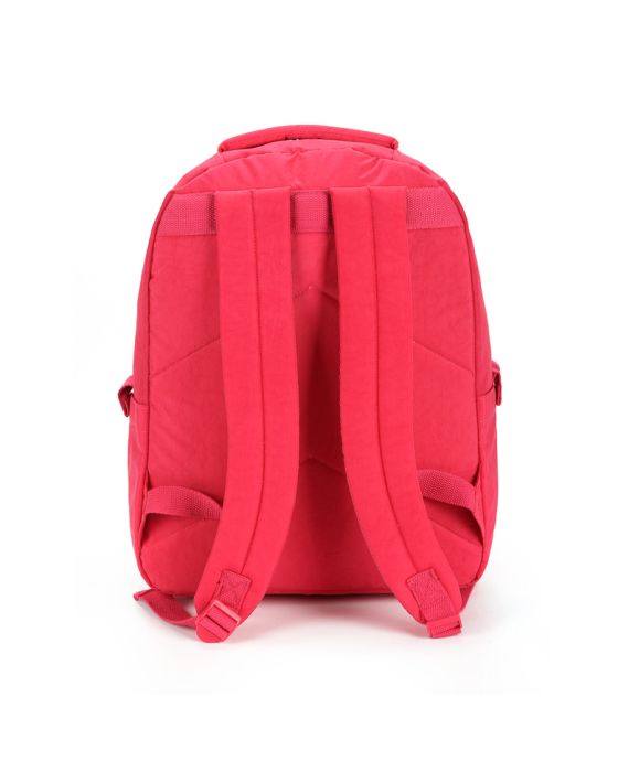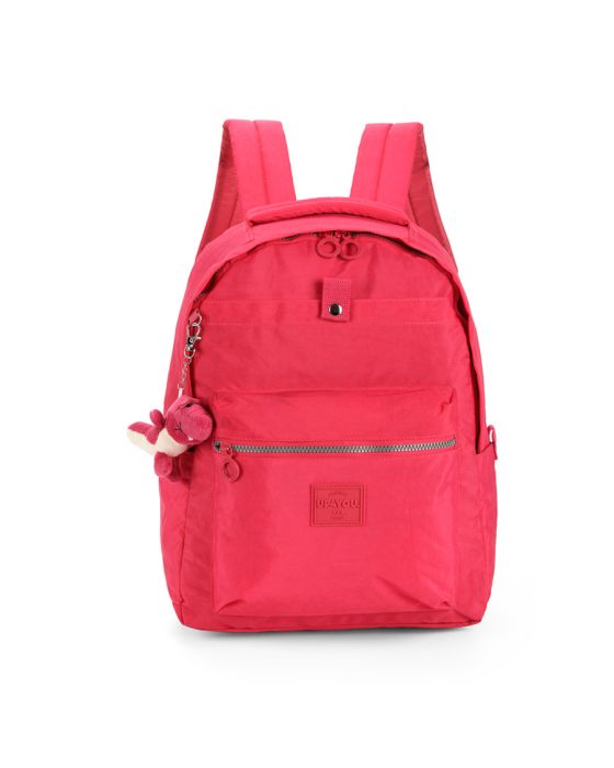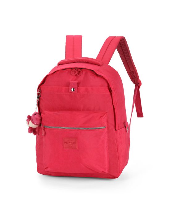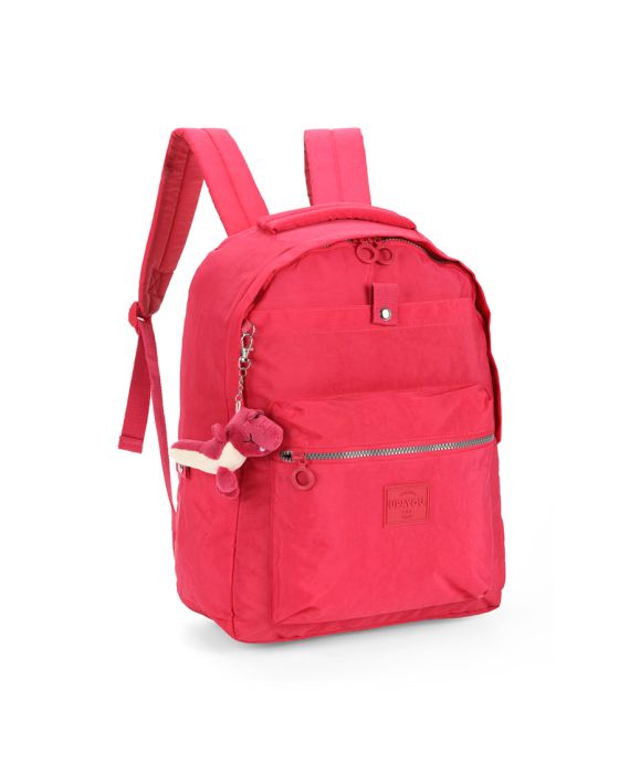 Características:Desenvolvida para o público jovem a mochila crinkle Up4you possui design moderno lindíssimo, tecido crinkle super resistente 100% poliéster, 02 bolsos com zíper - médio e grande, 01 bolso grande com fechamento botão, puxadores de metal personalizados UP4YOU, compartimento interno acolchoado para notebook de até 17 polegadas, bolsos laterais com fechamento botão, alças reguláveis para as costas, patche emborrachado UP4YOU e uma pelúcinha de dinossauro super fofa para deixar sua mochila ainda mais estilosa.Detalhes:- Marca: UP4YOU;- Modelo: Crinkle;- Referência: MJ47154UP;- Linha: Mochila escolar;- Cores: Pink;- Quantidade de bolsos: 3 bolsos;- Capacidade 17 litros;- Contém: 1 unidade do produto;- Compartimentos espaçosos para acomodar cadernos e estojo e notebook;- Compartimento para notebook: Até 17 polegadas;- Acompanha: 1 Chaveiro de pelúcia;- Possui alça para transporte;- Possui alças acolchoadas para utilizar nas costas com regulagem de altura;- Design compacto para fácil transporte;- Fechamento em zíper.Ideal para:- Para o trabalho, faculdade, escola, passeios, etc. Bolsos:- 1 Bolso Grande frontal com fechamento em zíper;- 1 Bolso Médio frontal com fechamento em zíper;- 1 Bolso Grande frontal com fechamento em botão.Recomendações:- Evite carga excessiva de objetos na sua mochila para assim manter as ótimas condições de uso e durabilidade do produto;- Limpar com pano seco ou levemente umedecido;- Não lavar, não alvejar, não secar em tambor, não passar e não lavar a seco;- Teme químicos e abrasivos;- Não deixar de molho. Composição:- Mochila: Fabricado em 100% Poliéster;- Forro: Fabricado em 100% Poliéster;Medidas:- Dimensões do produto: 40 x 31 x 14cm (AxCxL).* As especificações podem ser alteradas sem aviso prévio ** Imagem meramente ilustrativa.