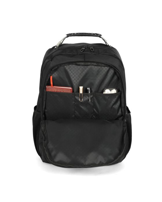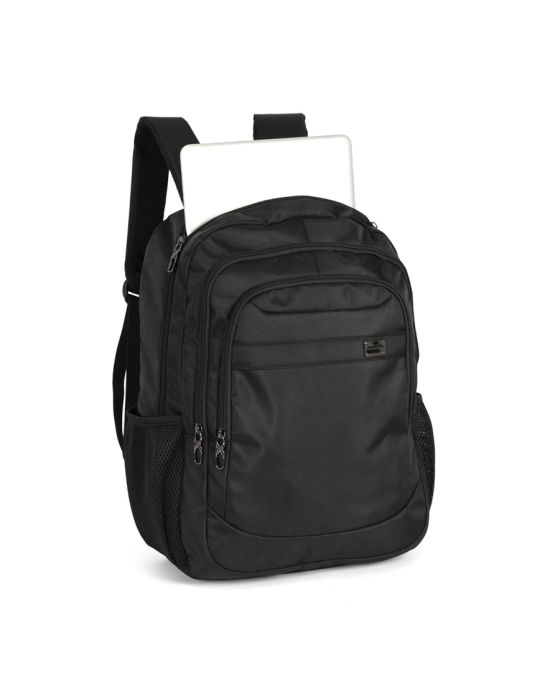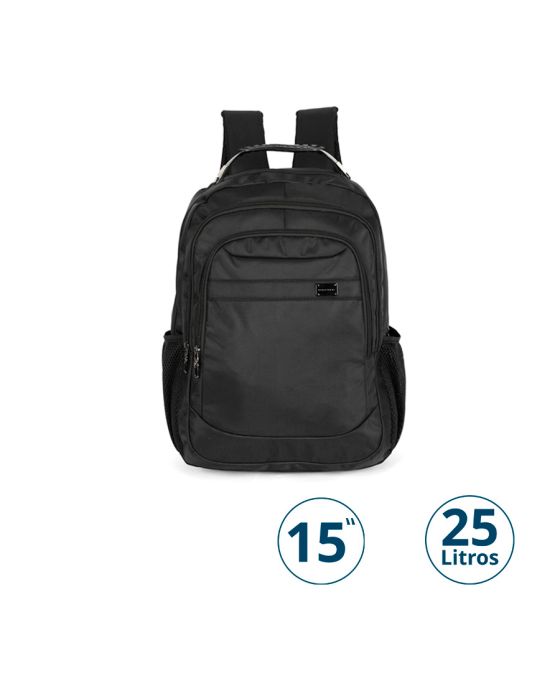 Características:- Praticidade e discrição para o dia a dia: A Mochila Notebook Preta MN54133PK Polo King foi projetada para atender estudantes, universitários e executivos que necessitam de um acessório funcional, resistente e com design discreto. Seu estilo básico combina com diferentes perfis e situações, oferecendo praticidade tanto no ambiente acadêmico quanto no profissional.- Estrutura organizada e funcional: Com 5 bolsos externos (2 frontais, 2 laterais telados e 1 principal) e 8 compartimentos internos, a mochila garante organização eficiente para diferentes tipos de itens. Conta com divisões específicas para acessórios pequenos, cadernos, livros e um compartimento acolchoado que acomoda notebooks de até 15 polegadas, assegurando proteção no transporte. Sua capacidade de 25 litros atende bem às demandas de uso diário.- Conforto e resistência no uso contínuo: Fabricada em 100% poliéster, a mochila alia resistência a um acabamento de alta qualidade. O forro interno, também em poliéster, reforça a durabilidade do produto. As costas e alças acolchoadas proporcionam conforto ergonômico durante longos períodos de uso, enquanto a alça de transporte superior com cabo de aço e proteção emborrachada garante maior segurança e firmeza na pegada.- Recursos adicionais para mobilidade: Pensada para quem está sempre em movimento, a mochila conta com alça traseira para encaixe em malas de rodinhas, recurso que facilita deslocamentos em viagens e garante maior praticidade em ambientes corporativos.- Marca de confiança em acessórios executivos: A Polo King é reconhecida por desenvolver produtos de alto padrão em bolsas, mochilas e acessórios, unindo qualidade, durabilidade e sofisticação. Seus modelos são projetados para atender às necessidades de profissionais exigentes, que buscam soluções práticas sem abrir mão da elegância.- Dimensões do produto:Comprimento: 32,5cm;Largura: 17,5cm;Altura: 43cm;Peso: 721g.* As especificações podem ser alteradas sem aviso prévio ** Imagem meramente ilustrativa.
