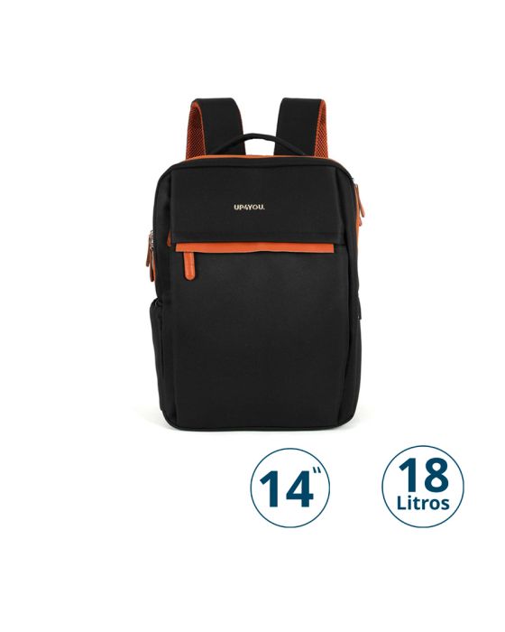 Características:- Mochila para notebook com design funcional e organização inteligente A Mochila Notebook UP4YOU MS49500UPPT foi desenvolvida para atender às rotinas escolar, universitária e corporativa, oferecendo praticidade, resistência e organização no transporte diário. Com capacidade de 18 litros e construção em poliéster, apresenta um design discreto na cor preta com detalhes em marrom, adequado a diferentes perfis de uso.- Estrutura compacta com múltiplos bolsos para melhor organização: O modelo dispõe de cinco bolsos funcionais: um bolso médio frontal, um bolso grande frontal, um bolso grande superior, um bolso superior exclusivo para notebook e um bolso lateral com elástico. Essa distribuição facilita a organização de documentos, acessórios, itens pessoais e garrafas, garantindo acesso rápido e eficiente no dia a dia.- Compartimento dedicado para notebook de até 14 polegadas: Possui compartimento específico para notebook de até 14”, proporcionando acomodação adequada e maior proteção durante o transporte. O forro interno em poliéster contribui para a durabilidade da mochila e para a segurança dos equipamentos armazenados.- Conforto no uso diário e praticidade em deslocamentos: Conta com alça superior acolchoada para transporte manual e alças traseiras acolchoadas que proporcionam maior conforto mesmo em uso prolongado. O elástico traseiro permite o encaixe na alça de malas de viagem, facilitando deslocamentos em viagens e trajetos mais longos. Os zíperes metálicos com puxadores em couro sintético marrom reforçam a resistência e o acabamento do produto.- Indicado para uso escolar, universitário e ambiente corporativo: Versátil, a mochila é indicada para estudantes e profissionais que necessitam de um acessório funcional para escolas, universidades, escritórios e atividades do cotidiano, unindo organização, conforto e visual neutro.- Sobre a marca UP4YOU: A UP4YOU é uma marca voltada ao desenvolvimento de mochilas e acessórios funcionais para o dia a dia, com foco em praticidade, durabilidade e design atual.- Dimensões do produto: Comprimento: 30cm;Largura: 15cm;Altura: 40cm;Peso: 508g.* As especificações podem ser alteradas sem aviso prévio ** Imagem meramente ilustrativa.