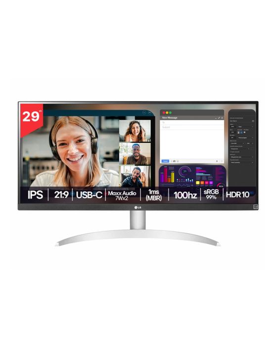 Características:- Produtividade ampliada com tela UltraWide: O monitor LED LG 29” UltraWide™ oferece resolução Full HD (2560 x 1080) e proporção 21:9, proporcionando até 30% mais área de tela em comparação aos monitores convencionais. Essa característica possibilita trabalhar com múltiplos conteúdos abertos simultaneamente, aumentando a produtividade em escritórios, home office e aplicações de design.- Qualidade de imagem realista: Com painel IPS e 99% de cobertura do espectro sRGB, o monitor entrega cores precisas e consistentes, ideais para quem trabalha com edição de imagem e vídeo. O suporte a HDR10 garante contraste aprimorado e maior riqueza de detalhes, enquanto o brilho típico de 350 cd/m² assegura nitidez em diferentes ambientes de iluminação.- Experiência fluida em jogos e multimídia: A taxa de atualização de 100Hz e o tempo de resposta de 1ms (MBR) garantem imagens rápidas e sem borrões, essenciais para jogos dinâmicos. Recursos como Dynamic Action Sync, Black Stabilizer e mira centralizada oferecem vantagens competitivas em jogos de ação.- Conforto visual para longas jornadas: O Reader Mode ajusta a temperatura de cor e luminância, tornando a leitura mais confortável, enquanto a tecnologia Flicker Safe reduz a emissão de luz azul e vibrações invisíveis, minimizando a fadiga ocular em períodos prolongados de uso.- Conectividade versátil: Equipado com HDMI, DisplayPort e USB-C, o monitor permite conexão prática a diferentes dispositivos, incluindo notebooks, PCs e periféricos. O USB-C possibilita transmissão de vídeo e dados em um único cabo, otimizando a organização da mesa de trabalho.- Design funcional e montagem flexível: O monitor apresenta design moderno com bordas ultrafinas em 3 lados, ajuste de inclinação e compatibilidade com suporte VESA 100 x 100 mm, permitindo instalação em bases ergonômicas ou fixação na parede.- Áudio integrado com imersão sonora: Equipado com dois alto-falantes de 7W com tecnologia MAXXAUDIO®, proporciona som imersivo para vídeos, filmes e reuniões online, dispensando o uso de caixas de som externas.- Marca referência em tecnologia: A LG é reconhecida mundialmente pela inovação em displays e soluções tecnológicas.- Itens inclusos na embalagem: 1 monitor, 1 fonte de alimentação, 1 cabo HDMI e manual de instruções.- Garantia do fornecedor: 1 ano contra defeitos da fabricação.- Dimensões do produto sem base:Comprimento: 68,85cm;Largura: 4,53cm;Altura: 31,34cm;Peso: 4kg.- Dimensões do produto com base:Comprimento: 68,85cm;Largura: 22,38cm;Altura: 40,66cm;Peso: 4,5kg.* As especificações podem ser alteradas sem aviso prévio ** Imagem meramente ilustrativa.