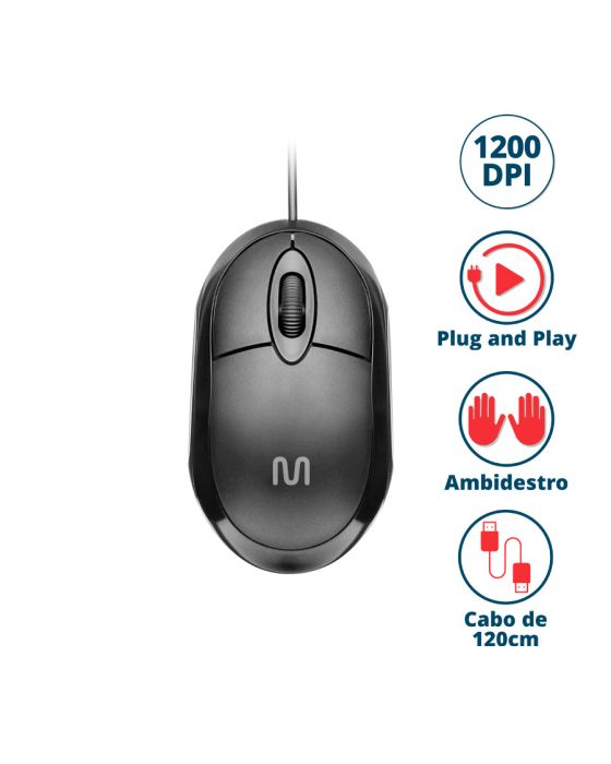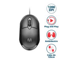Características:- Produtividade com simplicidade e precisão: O Mouse com Fio USB MO300 da Multi, marca brasileira reconhecida por oferecer soluções tecnológicas funcionais e acessíveis, é ideal para usuários que buscam desempenho estável em tarefas rotineiras. Com sensor óptico de 1200 DPI, oferece precisão e agilidade para navegação e atividades profissionais ou educacionais.- Design compacto e funcional: Seu formato reduzido é ideal para mesas com espaço limitado ou para uso em notebooks. O design anatômico proporciona conforto durante o uso, mesmo por longos períodos, com acabamento na cor preta que combina com qualquer ambiente de trabalho.- Três botões para controle essencial: O modelo possui 3 botões, incluindo clique esquerdo, direito e scroll central, atendendo às funções básicas com eficiência para navegação, edição de documentos e uso geral.- Conexão USB com Plug and Play: Instalação rápida e prática por conexão USB padrão, com tecnologia Plug and Play — basta conectar e utilizar, sem necessidade de drivers ou configurações adicionais.- Cabo de 1,2 m para maior mobilidade: Com comprimento de 1,2 metro, o cabo oferece liberdade de movimentação sem comprometer a organização da mesa ou estação de trabalho.- Compatibilidade estendida com múltiplos sistemas: Funciona com sistemas Android, Windows®, Linux e macOS, garantindo ampla compatibilidade com diversos dispositivos e plataformas.- Marca e confiabilidade: Com foco em inovação e usabilidade, os produtos Multi são desenvolvidos para facilitar o dia a dia, sempre com atenção à segurança, eficiência e custo-benefício.- Dimensões do produto:Comprimento: 9,7cm;Largura: 5,5cm;Altura: 3,4cm;Peso: 60g.- Conteúdo da embalagem: 1 Mouse com fio USB MO300 Multi.- Garantia do fornecedor: 3 anos contra defeitos de fabricação.* As especificações podem ser alteradas sem aviso prévio ** Imagem meramente ilustrativa.