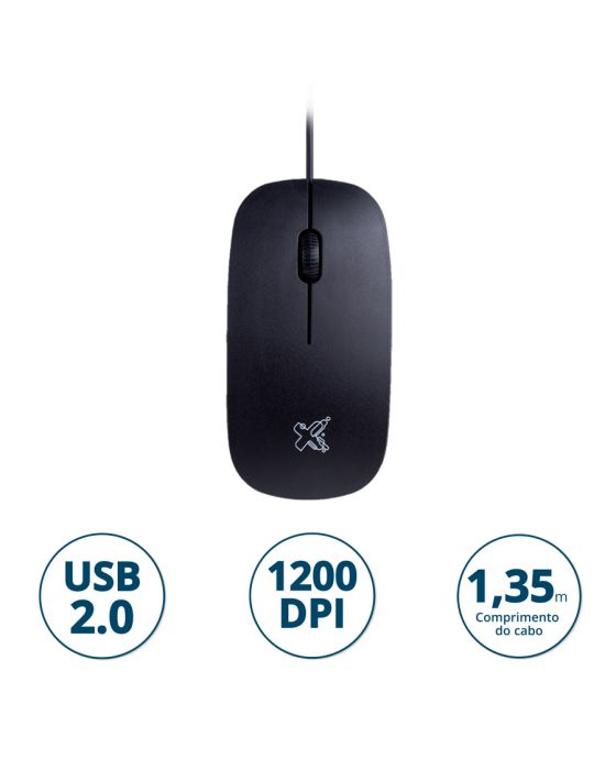 Características:O Mouse Surface da MaxPrint, além de ser leve, elegante e fácil de instalar, é ergonômico para destros e canhotos, possibilitando maior conforto no ambiente de trabalho ou em casa para todos os tipos de tarefas.Detalhes:- Marca: Maxprint;- Modelo: Surface;- Referência: 60000144;- Linha: Mouses;- Tipo: Com fio;- Cor: Preto;- Contém: 1 unidade do produto;- Conexão: Via USB 2.0;- Comprimento do cabo: 1,35m;- Alimentação: Cabo USB;- Desempenho através do sensor óptico.Fabricado na China. | Validade: Indeterminado.Tecnologia do sensor:- Tipo: Óptico;- Valor nominal: 1.200 DPI.Botões:- Três botões (clique com o botão esquerdo/direito e clique com o botão do meio para rolagem da tela);- Roda de rolagem: Sim.Compatibilidade:- Mac OS;- Windows xp, Windows Vista, Windows 7, Windows 8, Windows 10 ou superior.Alimentação:- Tipo de alimentação: Conexão US 2.0.Composição:- Fabricado em Polipropileno e Circuito Elétrico.Medidas:- Dimensões da embalagem: 15,7 x 8,7 x 3cm (CxLxA);- Peso da embalagem: 130g.Conteúdo da embalagem: 1 Mouse com fio Surface Maxprint.Garantia do fornecedor: 1 ano contra defeitos de fabricação.* As especificações podem ser alteradas sem aviso prévio ** Imagem meramente ilustrativa.