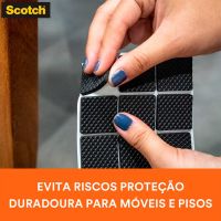 Características:O Protetor Antideslizante 3M Scotch™ ajuda você a manter seus objetos no lugar sem danificar as superfícies. Garanta que seu abajur não deslize ou que que sua máquina de lavar dance. Equipados com adesivo poderoso, os protetores de piso aderem sem esforço e também fornecem proteção duradoura contra riscos e arranhões.Detalhes:- Marca: Scotch™;- Fabricante: 3M™;- Referência: HB004262836;- Cor: Preto;- Tamanho: Grande;- Contém: 1 embalagem do produto com 12 unidades;- Antideslizante: Ajuda a estabilizar móveis e eletrodomésticos;- Não Risca: Protege e não danifica o piso;- Resistente: Durável e à prova da água;- Ambiente: Interno e externo;- Tamanho: 2,5 cm x 2,5 cm;- Alta aderência no objeto a ser colado devido a camada dupla de adesivo;- Protetor em EVA à prova d’água;- Ideal para móveis e cadeiras em ambientes com piscina ou umidade.Aplicação:- É ideal para aplicar em móveis leves, como: Cadeira, mesa e etc. para Eletrodomésticos, Mesas, Sofás e Poltronas.Modo de uso: - As superfícies devem estar limpas, secas e livres de gorduras (ceras, óleos etc);- Remover o liner protetor e aplicar pressionando contra a outra superfície.Uso:- Ideal para utilização em ambiente com água / úmidos e para evitar que os objetos se desloquem-se, evitando riscos, batidas e deslizamentos. Composição:- Liner: Papel tratado;- Dorso: EVA;- Adesivo: Adesivo Sintético.Conteúdo da embalagem: 1 Anti Risco Eva Quadrado Preto Medio 25x25mm Scotch 3m.* As especificações podem ser alteradas sem aviso prévio ** Imagem meramente ilustrativa.