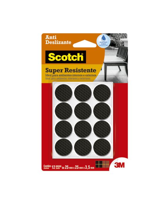 Características:O Protetor Antideslizante 3M Scotch™ ajuda você a manter seus objetos no lugar sem danificar as superfícies. Garanta que seu abajur não deslize ou que que sua máquina de lavar dance. Equipados com adesivo poderoso, os protetores de piso aderem sem esforço e também fornecem proteção duradoura contra riscos e arranhões.Detalhes:- Marca: Scotch™;- Fabricante: 3M™;- Referência: HB004262877;- Cor: Preto;- Tamanho: Médio;- Formato: Redondo;- Contém: 1 embalagem do produto com 12 unidades;- Antideslizante: Ajuda a estabilizar móveis e eletrodomésticos;- Não Risca: Protege e não danifica o piso;- Resistente: Durável e à prova da água;- Ambiente: Interno e externo;- Medida: 2,5 cm x 2,5 cm;- Alta aderência no objeto a ser colado devido a camada dupla de adesivo;- Protetor em EVA à prova d’água;- Ideal para móveis e cadeiras em ambientes com piscina ou umidade.Aplicação:- É ideal para aplicar em móveis leves, como: Eletrodomésticos, Mesas, Sofás e Poltronas.Modo de uso: - As superfícies devem estar limpas, secas e livres de gorduras (ceras, óleos etc);- Remover o liner protetor e aplicar pressionando contra a outra superfície.Uso:- Ideal para utilização em ambiente com água / úmidos e para evitar que os objetos se desloquem-se, evitando riscos, batidas e deslizamentos. Composição:- Liner: Papel tratado;- Dorso: EVA;- Adesivo: Adesivo Sintético.Conteúdo da embalagem: 1 Anti Risco Eva Redondo Preto Medio 25mm Scotch 3m.* As especificações podem ser alteradas sem aviso prévio ** Imagem meramente ilustrativa.