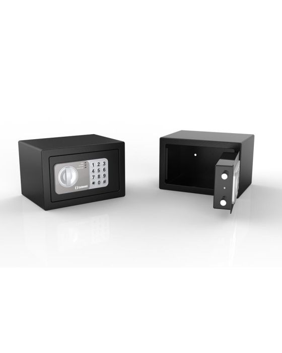 Característica:-Construção sólida em aço, proteção ideal contra roubo. Trava unidirecional (?20mm). -Utilize os furos de fixação da parte de baixo e traseira da caixa-forte para instalá-la em paredes ou em pisos, com os parafusos para montar incluídos. -Excelente acabamento em pintura eletrostática em pó (Powder Coating).-O teclado é bloqueado por cinco minutos se o código é ingressado seis vezes incorretamente. -Inclui dois códigos: o código mestre e o código do usuário.-Sistema de trava-Abra a caixa-forte utilizando um código de 3 a 8 dígitos.-O sistema de trava eletrônica está desenvolvido para oferecer um elevado nível de segurança e um fácil modo de operar.-Equipado com trava mecânica para abertura de emergência.-A porta termina de fechar-se automaticamente através de um sistema de imãs A luz de LED se mantém acesa sempre que a porta estiver aberta.-Medidas externas: 150x230x170mm-Peso: 4,5kg-Espessura da porta: 3mm-Espessura do corpo: 1mm* As especificações podem ser alteradas sem aviso prévio ** Imagem meramente ilustrativa.