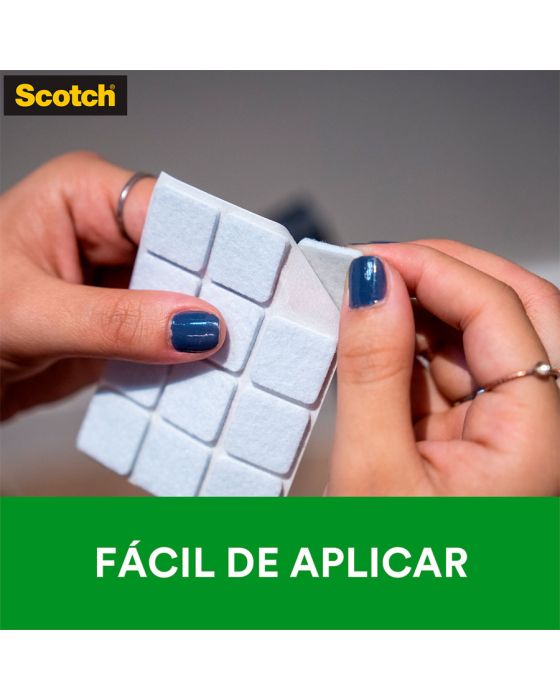 Características:O Feltro Sintético para Móveis Leves 3M Scotch™ ajuda você a proteger a beleza do seu piso. Equipados com adesivo poderoso e feltro durável, os protetores de piso aderem sem esforço aos pés dos seus móveis e fornecem proteção duradoura contra riscos e arranhões.Detalhes:- Marca: Scotch™;- Fabricante: 3M™;- Referência: HB004262596;- Cor: Branco;- Tamanho: Médio;- Formato: Quadrado;- Contém: 1 embalagem do produto com 12 unidades;- Não Risca: Protege e não danifica o piso;- Resistente: Durável;- Ambiente: Interno;- Medidas: 2,5 cm x 2,5cm.Aplicação:- É ideal para aplicar em móveis, como: Mesas, Cadeiras, Banquetas e Pufes.Modo de uso: - As superfícies devem estar limpas, secas e livres de gorduras (ceras, óleos etc);- Remover o liner protetor e aplicar pressionando contra a outra superfície.Uso:- Ideal para evitar que os objetos se desloquem-se, evitando riscos, batidas e deslizamentos. Composição:- Liner: Papel tratado;- Dorso: Feltro Sintético;- Adesivo: Adesivo Sintético.Conteúdo da embalagem: 1 Feltro Moveis Quadrado Branco Medio 25x25mm Scotch 3m.* As especificações podem ser alteradas sem aviso prévio ** Imagem meramente ilustrativa.