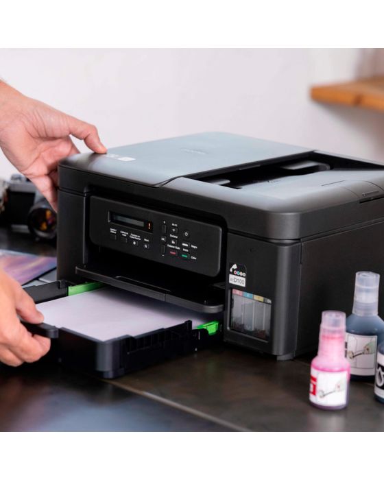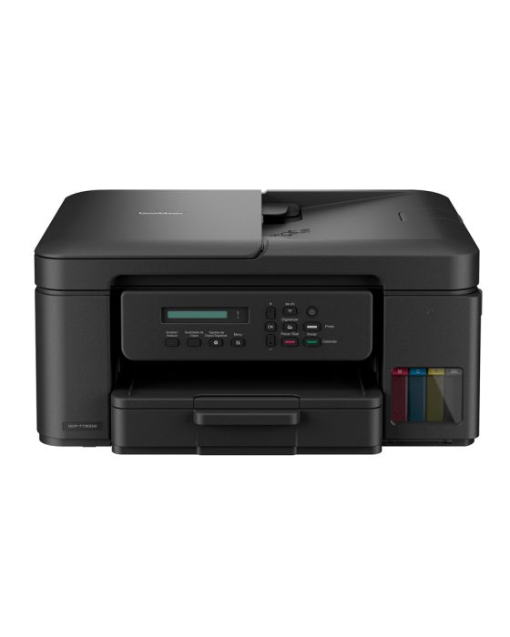 Características:A Multifuncional Tanque de Tinta Colorida DCP-T730DW, da série InkBenefit Tank, é a escolha ideal para pequenos e médios escritórios. Possui diversos recursos que te ajudam a economizar tempo, como a impressão frente e verso automática (duplex) e velocidade de impressão de até 27ppm em preto e 23ppm em cores (A4). Esta multifuncional possui um display LCD de 1 linha que a torna ainda mais intuitiva e está equipada com uma bandeja frontal coberta para até 150 folhas, que ajuda a otimizar o espaço e a proteger o papel contra poeira. O alimentador automático de documentos (ADF) para até 20 folhas e a bandeja manual (Bypass) permitem a impressão em diferentes tipos e tamanhos de papel. A função N-em-1 oferece a conveniência de copiar várias páginas em uma única folha, contribuindo para a economia de papel de forma prática. Ela possui múltiplas opções de conectividade, como conexão Wi-Fi® (2.4GHz e 5GHz), Wi-Fi Direct® e USB 2.0 de alta velocidade, proporcionando flexibilidade aos usuários. Esta multifuncional utiliza as novas garrafas de tinta da Brother com design anti-derramamento, que recarregam rapidamente o tanque de tinta em apenas alguns segundos e evitam a inserção das garrafas de tinta incorretas no compartimento de cada cor. Para garantir um desempenho consistente e resultados de alta qualidade, este equipamento acompanha 2 garrafas de tinta preta, que rendem até 15.000 páginas (aproximadamente 7.500 páginas cada)+, e e 1 kit de garrafa de tinta colorida (1 ciano, 1 magenta e 1 amarelo), com capacidade para até 5.000 páginas cada. É recomendado o uso exclusivo de suprimentos originais Brother para obter resultados impecáveis e duradouros. Experimente utilizar o aplicativo Brother Mobile Connect, que permite imprimir e digitalizar através do seu dispositivo móvel.Detalhes:- Marca: Brother;- Modelo: Multifuncional Tanque de Tinta InkBenefit;- Tipo: Colorida;- Referência: DCPT730DW;- Linha: Multifuncional;- Cor: Preta;- Voltagem/Tensão: Bivolt;- Contém: 1 unidade do produto;- Função: Impressão, Digitalização e Cópia;- Impressão Duplex: Impressão frente e verso automático;- Ciclo: 50 mil páginas; - Conectividade: Wi-Fi, Wi-Fi Direct® e USB 2.0.Impressão:- Padrão de impressão frente e verso: Sim- Velocidade máxima de impressão em (A4): Preto (ISO/IEC 24734): até 16 ipm / Colorido (ISO/IEC 24734): até 15;- Velocidade de impressão em preto (Carta): Preto (Modo Eco): até 27 ppm / Colorido (Modo Eco): até 23 ppm;- Tipo de consumível: Jato de Tinta com Tanque- Tecnologia de impressão: Jato de tinta- Impressão sem margens: Sim -Velocidade da cpu: 576 MhZ- Função Email Print: Sim- Resolução de impressão: 6000 x 1200 dpi- Velocidade de impressão (máxima): 1;- Tempo da primeira página2 6,2 / 6,5 segundos;- Compatibilidade com o driver de impressora: Windows, Mac OS.Manuseio do papel:- Capacidade de alimentação manual: 1 página;- Capacidade de saída de papel: 50 páginas;- Tipo de mídia: Comum, Papel Inkjet, Papel reciclado- Tamanho de papel - Bandeja de papel: Carta, Ofício, Executivo, A4, A5, A6, Cartão de índice (13 x 20 cm), Envelope (Com-10), Envelope (C5), Envelope (DL), Envelope (Monarch), Foto (10 x 15 cm), Foto 2L (13 x 18 cm);- Gramatura da folha - Alimentação manual (mín./máx.): 64-300 g/m²;- Gramatura da folha - Bandeja de papel (mín./máx.): 64-220 g/m².Capacidade máxima do alimentador automático de documentos: 20;- Capacidade de entrada de papel (máxima): Bandeja de papel para 150 folhas, entrada de alimentação manual de folha única;- Capacidade de impressão frente e verso: Sim;- Capacidade de alimentação manual: 1 página;- Tipo de mídia: Comum, Papel comum, jato de tinta, papel reciclado, papel brilhante;- Capacidade de bandeja multiuso: 80;- Capacidade de saída de papel: 50 páginas;- Tamanho de papel - Bandeja de papel: Carta, Ofício, Executivo, A4, A5, A6, Cartão de índice (13 x 17 cm), Envelope (Com-10), Envelope (C5), Envelope (DL), Envelope (Monarch), Foto (10 x 15 cm), Foto (13 x 18 cm);- Gramatura da folha - ADF (mín./máx.): 64-90 g/m²;- Gramatura da folha - Alimentação manual (mín./máx.): 64-300 g/m²;- Gramatura da folha - Bandeja de papel (mín./máx.): 64-220 g/m².Cópia:- Resolução de cópia: 1200 x 600 dpi;- Estilo de desenhos: Flatbed (vidro de exposição);- Velocidade máxima de cópia em base ISO (A4/Carta) :Preto 11 ipm / Cores 3.5 ipm;- Funções: N em 1 / 2 em 1 / 4 em 1;- Função Pôster: Sim;- Redução/Ampliação: 25%-400%;- Velocidade de cópia (máx.)4 Até 11,0 / 8,0 ipm;- Resolução de cópia (máxima): Impressão: 2.400 x 1.200 dpi (Preto/Colorido) / Digitalização: 1.200 x 1.200 dpi (Preto) / 600 x 1.200 dpi (Colorido);- Redução/Ampliação de cópia; 25% - 400% em incrementos de 1%;- Opções de cópia: Cópias múltiplas (até 99), empilhar, classificar, N-em-1, pôster, ajustar à página, remoção de cor de fundo, cópia de identidade;- - Capacidade de cópia: Monocromática, Colorida.Scanner:- Tipo de scanner Vidro de exposição colorido (CIS);- Tamanho do vidro de exposição 8,5 x 11,7 (A4/Carta);- Recursos avançados de digitalização: Alinhamento automático, de múltiplas páginas para uma única página, remoção da cor de fundo;- Resolução de digitalização (máx.) Óptico: até 2.400 x 1.200 dpi (mesa plana) / Interpolado: até 19.200 x 19.200 dpi;- Compatibilidade de digitalização Imagem, e-mail, arquivo, OCR;- Serviços em nuvem: BOX/BOX for Business, ONENOTE, GOOGLE DRIVE™/GOOGLE DRIVE for Business, EVERNOTE®/EVERNOTE Business, ONEDRIVE/ONEDRIVE for Business, DROPBOX/DROPBOX for Business;- Resolução de digitalização (máx.) Óptico: até 2.400 x 1.200 dpi (mesa plana) / Interpolado: até 19.200 x 19.200 dpi;- Recurso Digitalizar para: Imagem, OCR, Arquivo, Email;- Capacidade de digitalização: Monocromática, Monocromática e ColoridaGeral:- Modo de economia de tinta: Sim- Tela LCD: 1 
