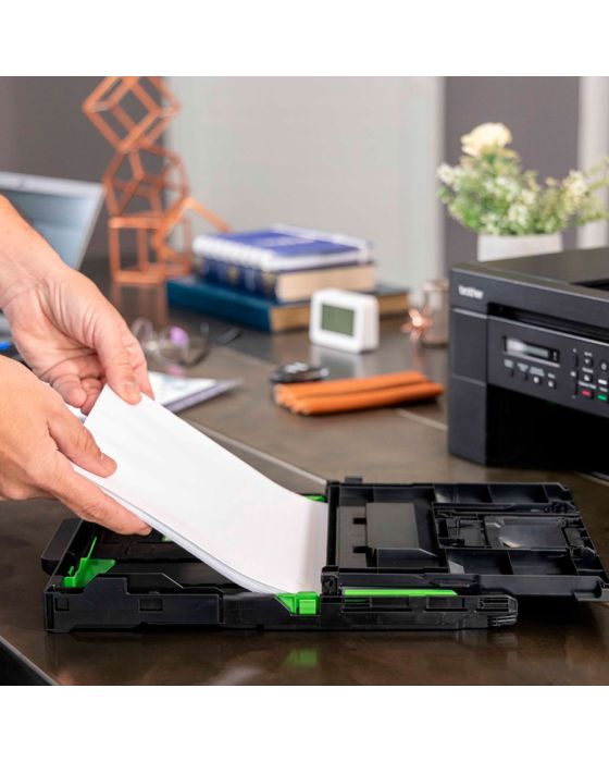 Características:- Alto desempenho para empresas e grupos de trabalho: A Multifuncional Tanque de Tinta InkBenefit DCP-T830DW 127V Brother foi desenvolvida para atender às necessidades de pequenos e médios grupos de trabalho. Oferece impressão, cópia e digitalização com excelente qualidade e velocidade, chegando a 30 ppm em preto e 26 ppm em cores no formato Carta, além de 17 ipm e 16 ipm em preto e cores, respectivamente, em base ISO. Conta ainda com impressão duplex automática (frente e verso), que contribui para redução de custos e maior produtividade.- Versatilidade em papéis e recursos de cópia: Equipada com bandeja frontal coberta para até 150 folhas, bandeja multipropósito para 80 folhas e saída para até 50 páginas, oferece flexibilidade no uso de papéis comuns, reciclados, fotográficos e envelopes em diferentes formatos. O alimentador automático de documentos (ADF) suporta até 20 páginas, agilizando digitalizações e cópias em lote. A função N-em-1 (2 em 1 ou 4 em 1) e o modo pôster permitem otimização do consumo de papel, com reduções e ampliações de 25% a 400%.- Conectividade completa e integração com dispositivos móveis: Compatível com múltiplas interfaces, incluindo Wi-Fi® 2.4 GHz e 5 GHz, Wi-Fi Direct®, Ethernet e USB 2.0 de alta velocidade, garantindo flexibilidade em ambientes corporativos. Suporta aplicativos e protocolos como AirPrint®, Brother iPrint&Scan, Mopria®, além de integração com dispositivos móveis. O aplicativo Brother Mobile Connect amplia a usabilidade, permitindo imprimir e digitalizar diretamente pelo smartphone ou tablet.- Qualidade e rendimento em suprimentos: A resolução máxima de impressão de 6000 x 1200 dpi assegura textos nítidos e imagens com definição profissional. O sistema de recarga com garrafas de tinta anti-derramamento proporciona abastecimento rápido e seguro, evitando erros de inserção. O equipamento acompanha 2 garrafas de tinta preta (até 15.000 páginas no total, 7.500 páginas cada) e 1 kit de tintas coloridas (ciano, magenta e amarelo) com rendimento de até 5.000 páginas por cor, garantindo baixo custo por página.- Recursos avançados de digitalização: O scanner flatbed oferece resolução óptica de até 2400 x 1200 dpi e interpolada de até 19200 x 19200 dpi, com funções de digitalização monocromática e colorida. Possui recursos de remoção de cor de fundo e digitalização 2 em 1, além de integração direta com serviços em nuvem como Google Drive™, Dropbox, OneDrive, Evernote® e OneNote. Suporta digitalização para imagem, OCR, arquivo e e-mail, facilitando o gerenciamento de documentos digitais.- Durabilidade e confiabilidade: Com ciclo de trabalho mensal de até 2.500 páginas e recomendação de uso entre 50 e 1.000 páginas por mês, atende demandas de uso contínuo sem comprometer a performance. Conta com memória interna de 128 MB, tela LCD de 1 linha e modo de economia de tinta para reduzir custos operacionais.- Suprimentos compatíveis: BTD100BK2PK (kit com 2 garrafas de tinta preta), BTD100CL3PK (kit com 3 garrafas de tinta colorida: ciano, magenta e amarelo), BTD100BK (preta), BTD100C (ciano), BTD100M (magenta) e BTD100Y (amarela).- Tradição da marca Brother: Fundada no Japão, a Brother é reconhecida mundialmente por sua tecnologia em equipamentos de impressão, multifuncionais e soluções corporativas.- Itens inclusos na embalagem: 1 Brother DCP-T830DW, duas garrafas de tinta preta BTD100BK de ultra rendimento (até 7.500 páginas/cada), conjunto de garrafas de tinta ciano, magenta e amarela BTD100C/M/Y (uma de cada, com rendimento até 5.000 páginas/cada), 1 Guia de Configuração Rápida, 1 Guia de Segurança do Produto, 1 Guia de Referência e 1 Cabo USB.- Garantia do fornecedor: Garantia limitada 1 ano ou até atingir 50.000 páginas impressas.- Dimensões do produto:Comprimento: 43,5m;Largura: 41,8cm;Altura: 18cm;Peso: 10Kg.- Dimensões da embalagem:Comprimento: 50,5m;Largura: 28cm;Altura: 54cm;Peso: 12Kg.* As especificações podem ser alteradas sem aviso prévio ** Imagem meramente ilustrativa.
