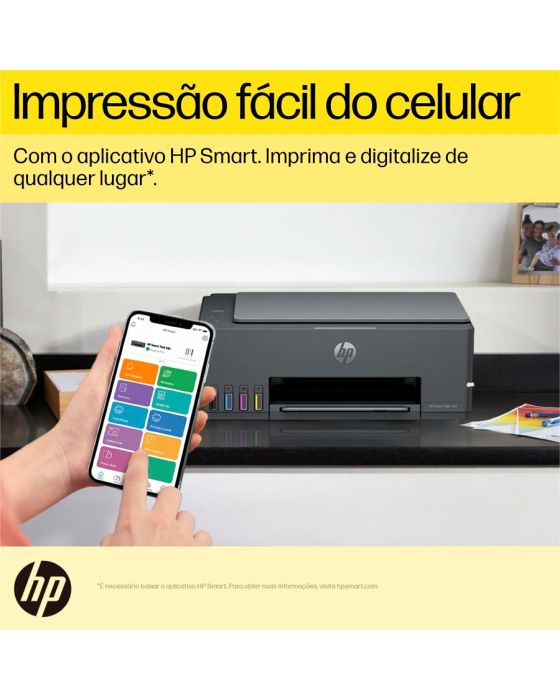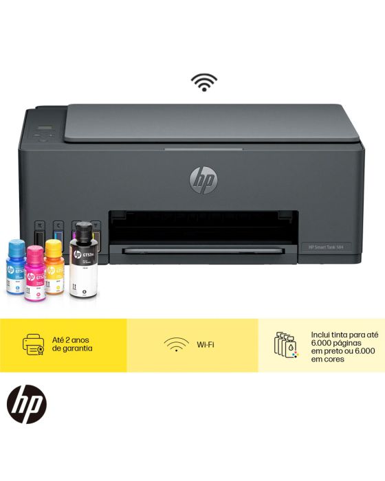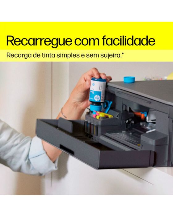 Características:Aproveite a confiabilidade rotineira da Impressora multifuncional sem fio HP Smart Tank 584 que proporciona a qualidade HP que você espera e a economia que você precisa. A Velocidade em preto até 22ppm rascunho ou 12ppm ISO, Colorido até 16 ppm rascunho ou 5ppm ISO, resolução de impressão preto até 1200 x 1200 dpi renderizados; Cor até 4800 x 1200 dpi otimizados em cores. Com o visor LCD iCON de 1,2 polegada Manuseio do papel, bandeja de entrada para 100 folhas e bandeja de saída para 30 folhasDetalhes:- Marca: HP;- Modelo: Smart Tank 854;- Referência: 5D1C1A;- Linha: Impressora Multifuncional;- Cor: Preto;- Contém: 1 unidade do produto;- Funções: Impressão, cópia, digitalização;- Fácil de instalar e de usar;Impressão:- HP Thermal Inkjet;- Cor: Cor;- Ciclo de trabalho (mensal, A4): Até 3.000 páginas;- Volume mensal de páginas recomendado: 400 a 800;- Resolução: Preto: Até 1200 x 1200 dpi renderizados Cor: Até 4800 x 1200 dpi otimizados em cores (quando imprimir a partir de um computador) e 1200 dpi de entrada;- Velocidade de impressão preto (normal, A4): Até 12 ppm;- Velocidade de impressão colorida (ISO, A4): Até 5 ppm;- Impressão frente e verso: Manual (suporte a driver fornecido).Cópias:- Cópias, no máximo: Até 99 cópias;- Resolução de cópia (gráficos e texto em cores): Até 600 x 600 dpi;- Resolução de cópia (texto em preto): Até 600 dpi;- Resolução de digitalização, óptica: Até 1200 dpi.Manuseio do Papel: - Manuseio de entrada de papel, padrão: Bandeja de entrada para 100 folhas;- Manuseio de saída de papel, padrão: Bandeja de saída para 30 folhas;- Precisão do alinhamento vertical: +/- 0,02mm;- Tipos de mídias: Papel comum, papéis foscos para folhetos, papéis brilhantes para folhetos, papéis fotográficos, envelopes, outros papéis especiais p/ jato de tinta;- Gramaturas de mídia, recomendado: 75 g/m².Scanner:- Tamanho da digitalização, máximo: 216 x 297 mm;- Formatos dos arquivos digitalizados: JPEG; PDF;- Digitalização em cores: Sim;- Tipo de scanner: Somente mesa;- Tamanho da digitalização, máximo: 216 x 297mm;- Modos de entrada de digitalização: Copiar; Software HP; EWS;- Profundidade de bits: 24 bits.- Características padrão transmissão digital: Digitalizar para arquivo (pelo software); HP Smart Tasks;Conectividade:- Conectividade, padrão: 1 USB 2.0 de alta velocidade (dispositivo); 1 porta Wi-Fi 802.11b/g/n; 1 Wi-Fi Direct;- Capacidade sem fios: Sim, Wi-Fi 2.4G incorporado, Wi-Fi Direct;- Capacidade de impressão móvel: Aplicativo HP Smart; Apple AirPrint; Serviço de impressão Mopria; Plug-in de serviço de impressão HP (impressão Android); Wi-Fi Direct Printing.Suprimentos: - M0H54AL Cartucho de tinta Original HP Ciano GT52: rendimento médio até 8.000 páginas;- M0H55AL Cartucho de tinta Original HP Magenta GT52: rendimento médio de até 8.000 páginas;- M0H56AL Cartucho de tinta Original HP Amarela GT52: rendimento médio de até 8.000 páginas;- 1VV22AL Cartucho de tinta Original HP Preto GT53: rendimento médio de até 4.000 páginas;Energia:- Alimentação: Voltagem de entrada: 100 a 240 VCA (+/- 10%), 50/60 Hz (+/- 3 Hz) / Alta tensão: Tensão de entrada de 200 a 240 VCA (+/- 10%), 50/60 Hz (+/-3 Hz);- Consumo de energia: 0,109 watt (desligamento manual); 3,023 watts (pronta); 1,096 watt (suspensão);- Tipo de fonte de alimentação: Interno.Memória:- Memória, padrão: 64Mb DDR1 integrado;- Memória, máximo: 64Mb;- Velocidade do processador: 980 MHz.Compatibilidade:- Requisitos mínimos do sistema PC: Microsoft® Windows® 11, 10, 7 SP1: 32 bits ou 64 bits, conexão com a Internet, Microsoft® Internet Explorer ou Edge.; Mac: Apple® macOS v10.15 Catalina, macOS v11 Big Sur, macOS v12 Monterey; HD de 2 GB; Necessário acesso à Internet;- Requisitos mínimos do sistema: Windows 11; Windows 10; Windows 7; Android; iOS; macOS 12 Monterey; macOS 11 Big Sur; macOS 10.15 Catalina.Medidas:- Dimensões do produto: 43,46 x 36,15 x 15,72cm (CxLxA);- Dimensões do produto aberto: 43,46 x 58,06 x 25,93cm (CxLxA);- Dimensões da embalagem: 49,5 x 19,8 x 47,8cm (CxLxA);- Peso do produto: 5,03kg;- Peso da embalagem: 7,6Kg.Conteúdo da embalagem: 1 Impressora multifuncional HP Smart Tank 854, 1 Frasco de tinta HP GT53XL preto original, 1 Frasco de tinta HP GT52 ciano original, 1 Frasco de tinta HP GT52 magenta original, 1 Frasco de tinta HP GT52 amarelo original, 1 Panfleto de cuidados com a tinta, 1 Guia de configuração, 1 Guia de referência, 1 Panfleto regulamentar e 1 Cabo de alimentação. Garantia do fornecedor: 1 ano contra defeitos de fabricação.* As especificações podem ser alteradas sem aviso prévio ** Imagem meramente ilustrativa.