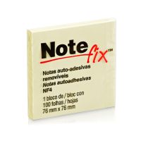 Características:Suas folhas são reposicionáveis, ou seja, possuem adesivo de qualidade 3M, que permite que sejam retirados e recolocados, sem danificar papéis ou outras superfícies, sem deixar resíduos do adesivo e sem perder a eficiência na fixação.Detalhes:- Marca: Notefix™;- Fabricante: 3M;- Modelo: Bloco Adesivo Notefix™;- Referência: HB004088694;- Linha: Blocos Adesivos;- Cor: Amarelo;- Quantidade de folhas: 100 folhas;- Quantidade de blocos: 1 bloco;- Contém: 1 unidade do produto com 1 bloco de 100 folhas;- Medidas: 76 x 76mm (7,6 x 7,6cm);- Folhas reposicionáveis;- Notas adesivas com qualidade 3M;- Permite deixar mensagens de forma prática e rápida.Aplicações sugeridas:- Ideal para fazer anotações e lembretes.Composição:- Papel tipo superbond com adesivo Acrílico sintético, removível e reposicionável.AVISO!- O adesivo pode deixar marcas em algumas superfícies ou remover tinta. Teste antes de usar!Conteúdo da embalagem: 1 Notefix 654 Amarelo 76x76mm 100 Folhas 3m.* As especificações podem ser alteradas sem aviso prévio ** Imagem meramente ilustrativa.