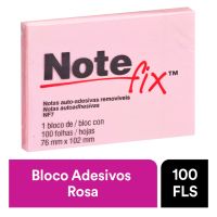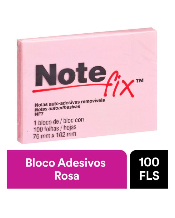 Características:Suas folhas são reposicionáveis, ou seja, possuem adesivo de qualidade 3M, que permite que sejam retirados e recolocados, sem danificar papéis ou outras superfícies, sem deixar resíduos do adesivo e sem perder a eficiência na fixação.Detalhes:- Marca: Notefix™;- Fabricante: 3M;- Modelo: Bloco Adesivo Notefix™;- Referência: HB004116107;- Linha: Blocos Adesivos;- Cor: Rosa;- Quantidade de folhas: 100 folhas;- Quantidade de blocos: 1 bloco;- Contém: 1 unidade do produto com 1 bloco de 100 folhas;- Medidas: 76 x 102mm (7,6 x 10,2cm);- Folhas reposicionáveis;- Notas adesivas com qualidade 3M;- Permite deixar mensagens de forma prática e rápida.Aplicações sugeridas:- Ideal para fazer anotações e lembretes.Composição:- Papel tipo superbond com adesivo Acrílico sintético, removível e reposicionável.AVISO!- O adesivo pode deixar marcas em algumas superfícies ou remover tinta. Teste antes de usar!Conteúdo da embalagem: 1 Notefix 657 Rosa 76x102mm 100 Folhas.* As especificações podem ser alteradas sem aviso prévio ** Imagem meramente ilustrativa.