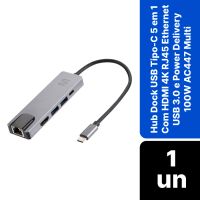 Hub Usb Tipo-c 5 Em 1 Com Hdmi 4k Rj45 Ethernet Usb 3.0 E Power Delivery 100w Ac447 Multi