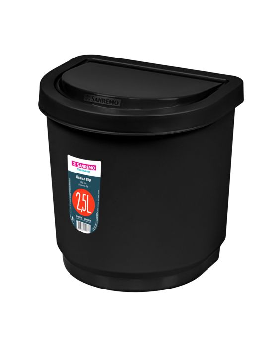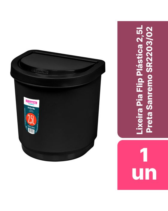 Cesto De Lixo Pia Flip Plástica 2,5l Preta Sanremo Sr2203/20