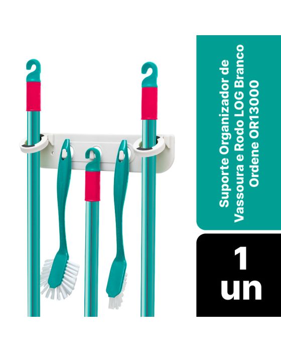 Suporte Organizador De Vassoura E Rodo Log Branco Ordene Or13000