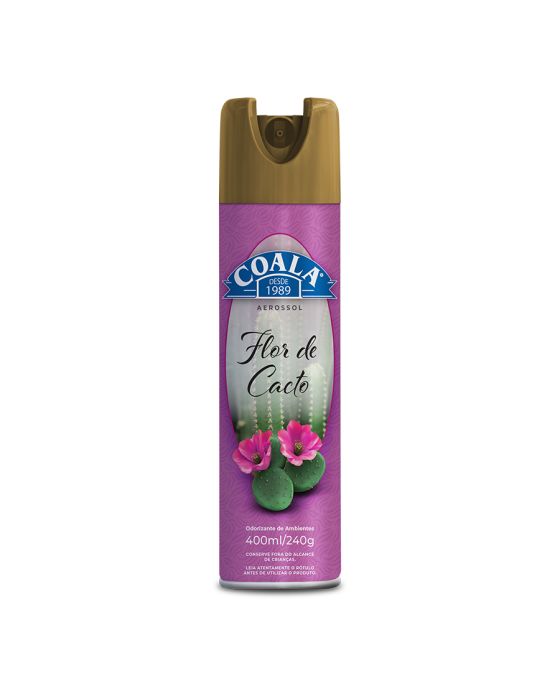Caracteristicas:Detalhes:- Marca: Coala.- Modelo: Odorizador de ambientes.- Linha: Aerossol.- Fragrância: Flor de Cacto- Quantidade: 400ml.- Contém: 1 unidade do produto.Modo de usar:- Agite bem a embalagem antes e durante o uso.- Pulverize sempre o jato para cima no ambiente, evitando dirigir sobre pessoas, plantas, animais, alimentos, paredes, tecidos, chamas ou superfícies aquecida.Conservação:- Não expor a temperatura superior a 50°C.- Mantenha longe do fogo e de superfícies aquecidas.- Mantenha o recipiente hemeticamente fechado em lugar ventilado.- Manter o produto em sua embalagem original. Não reutilizar embalagens vazias.- Mantenha ao abrigo de luz solar. - Não deixar a embalagem em veículos, risco de explosão ou vazamentos.Composição:- Antioxidante, veículo, propelente, etanol e fragrância.O fabricante não se rsponsabiliza pelo uso incorreto do produto!* As especificações podem ser alteradas sem aviso prévio ** Imagem meramente ilustrativa *** CONSERVE FORA DO ALCANCE DAS CRIANÇAS E DOS ANIMAIS DOMÉSTICOS.