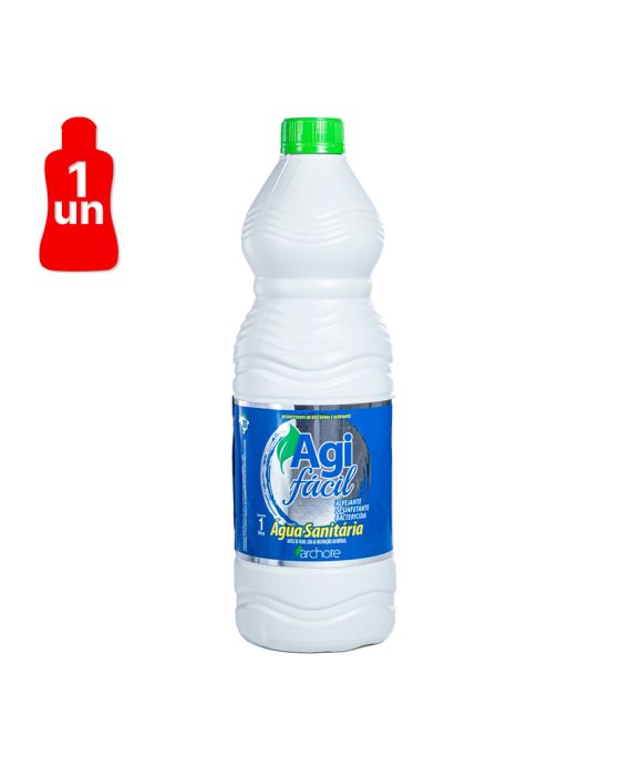 Características:- Água Sanitária 1L à base de hipoclorito de sódio Agifácil: A Água Sanitária Agifácil é um produto à base de hipoclorito de sódio, indicado para limpeza, alvejamento de tecidos brancos e desinfecção de superfícies e hortifrutícolas. Possui teor de cloro ativo entre 2,0% e 2,5% p/p, garantindo ação eficaz na eliminação de microrganismos.- Eficácia antimicrobiana comprovada: Apresenta eficácia contra Staphylococcus aureus, Salmonella Choleraesuis, Escherichia coli e Enterococcus faecium, contribuindo para a higienização segura de ambientes domésticos e comerciais. Produto com coloração amarelo-esverdeada e odor característico de cloro.- Aplicações e modo de uso: Lavagem de roupas brancas: Diluir 200 ml para cada 20 litros de água, deixar de molho por 30 minutos antes da lavagem. Não utilizar em tecidos coloridos; Desinfecção de frutas, verduras e legumes: Diluir 8 ml (1 colher de sopa) em 1 litro de água, deixar por 10 minutos e enxaguar; Limpeza geral: Diluir 200 ml em 10 litros de água para pisos, azulejos e louças; Manchas e incrustações: Aplicar puro e enxaguar após no mínimo 10 minutos; Instalações sanitárias: Aplicar 100 ml e deixar agir por 1 hora antes de dar descarga; Desinfecção de ralos e esgotos: Aplicar puro, com ação mínima de 10 minutos; Prevenção de larvas (dengue): Adicionar 2 ml por litro de água acumulada.- Composição: Formulado com Hipoclorito de sódio e veículo.- Aplicação indicada: Indicada para uso doméstico e institucional na higienização de cozinhas, banheiros, áreas externas, lavanderias e no tratamento de alimentos conforme diluição recomendada.- Sobre a marca Agifácil: A Agifácil atua no segmento de produtos de limpeza, oferecendo soluções práticas e eficientes para higienização doméstica e profissional, com foco em desempenho e custo-benefício.- Dimensões do produto:Comprimento: 9cm;Largura: 9cm;Altura: 26,5cm;Peso: 1,041kg.IMPORTANTE! CONSERVAR FORA DO ALCANCE DAS CRIANÇAS E DOS ANIMAIS DOMÉSTICOS.* As especificações podem ser alteradas sem aviso prévio ** Imagem meramente ilustrativa.