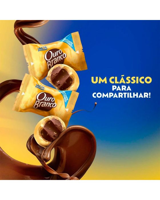 Caracteristicas:Um verdadeiro tesouro para os amantes de chocolate branco, o bombom Ouro Branco traz a combinação de um recheio cremoso com a deliciosa crocância da cobertura de chocolate branco. Em sua versão unitária de 20g, Ouro Branco é perfeito para ter sempre na despensa de casa, ou carregar com você na bolsa para quando bate aquela super vontade de comer um delicioso chocolate.Detalhes:- Marca: Ouro Branco.- Fabricante: Lacta.- Linha: Chocolate.- Tipo: Bombom.- Peso: 1Kg- Contém aproximadamente 48 unidades.Ingredientes:- Açúcar, gordura vegetal hidrogenada, gordura vegetal, farinha de trigo enriquecida com ferro, ácido fólico, vitaminas B1, B2, B3 e zinco, soro de leite em pó, cacau, leite em pó integral, flocos de arroz, farinha de soja, amendoim, extrato de malte, sal, óleo vegetal, manteiga de cacau, massa de cacau, gordura de manteiga desidratada, emulsificantes lecitina de soja e poli glicerol polir ricinoleato, fermento químico bicarbonato de sódio e aromatizante.ALÉRGICOS: CONTÉM AMENDOIM E DERIVADOS DE SOJA, TRIGO, LEITE E CEVADA. PODE CONTER AMÊNDOA, CASTANHA-DE-CAJU, AVELÃ, AVEIA, CENTEIO E LÁTEX NATURAL. CONTÉM LACTOSE. CONTÉM GLÚTEN.* As especificações podem ser alteradas sem aviso prévio ** Imagem meramente ilustrativa ***Produtos que compõe a foto e não estejam na descrição não acompanham o produto, são de caráter ilustrativo.