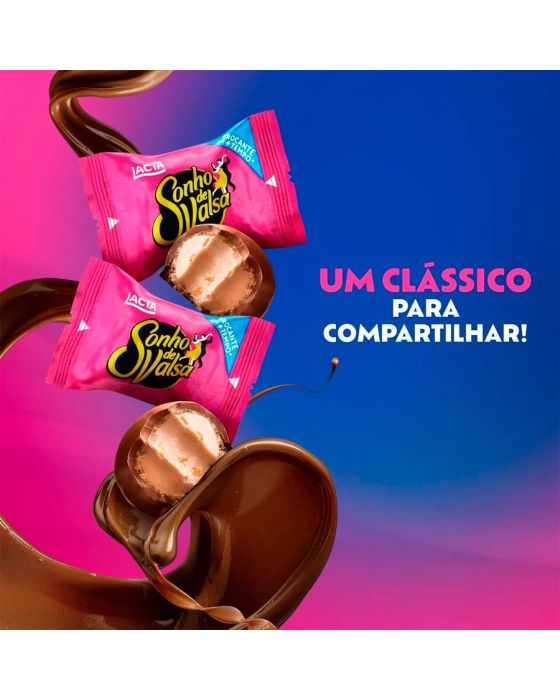 Caracteristicas:O irresistível bombom Sonho de Valsa traz uma combinação de um recheio verdadeiramente cremoso de amendoim e castanha de caju, junto com uma deliciosa crocância da sua cobertura de chocolate, uma explosão de sabor! Sua versão unitária de 20g, o bombom Sonho de Valsa é perfeito para ter sempre na sua despensa de casa ou na sua bolsa, para quando bater aquela vontade de comer um delicioso chocolate!Detalhes:- Marca: Sonho de Valsa.- Fabricante: Lacta.- Linha: Chocolates.- Tipo: Bombom.- Peso: 1Kg.- Contém: Aproximadamente 48 unidades.Ingredientes: - Açúcar, gordura vegetal hidrogenada, gordura vegetal, farinha de trigo enriquecida com ferro, ácido fólico, vitaminas B1, B2 e B3 e zinco, soro de leite em pó, amendoim, cacau, farinha de soja, gordura de manteiga desidratada, sal, castanha-de-caju, óleo vegetal, emulsificantes: lecitina de soja e poli glicerol, polir ricinoleato, fermento químico bicarbonato de sódio e aromatizante.ALÉRGICOS: CONTÉM CASTANHA-DE-CAJU, AMENDOIM, DERIVADOS DE LEITE, SOJA E TRIGO. PODE CONTER AMÊNDOA, CEVADA, AVELÃ, AVEIA, CENTEIO E LÁTEX NATURAL. CONTÉM LACTOSE. CONTÉM GLÚTEN.* As especificações podem ser alteradas sem aviso prévio ** Imagem meramente ilustrativa ***Produtos que compõe a foto e não estejam na descrição não acompanham o produto, são de caráter ilustrativo.